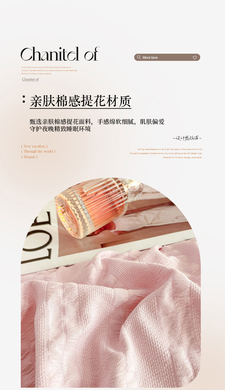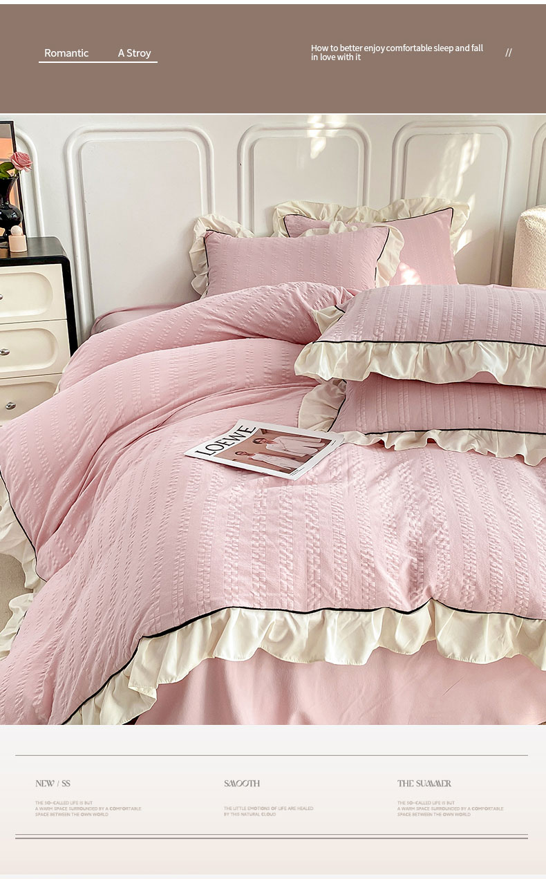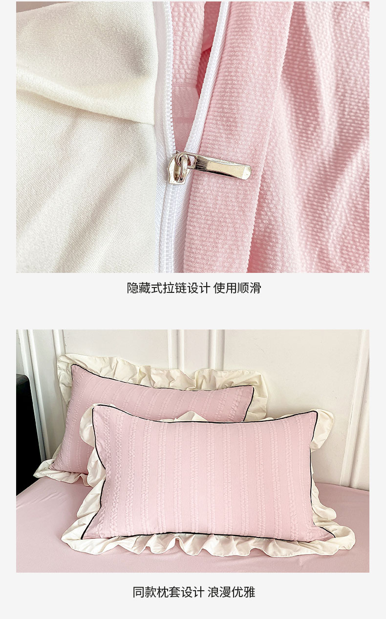 商品名称:大境 2024新款小提花韩版公主风小清新轻奢四件套三件套 粉豆沙