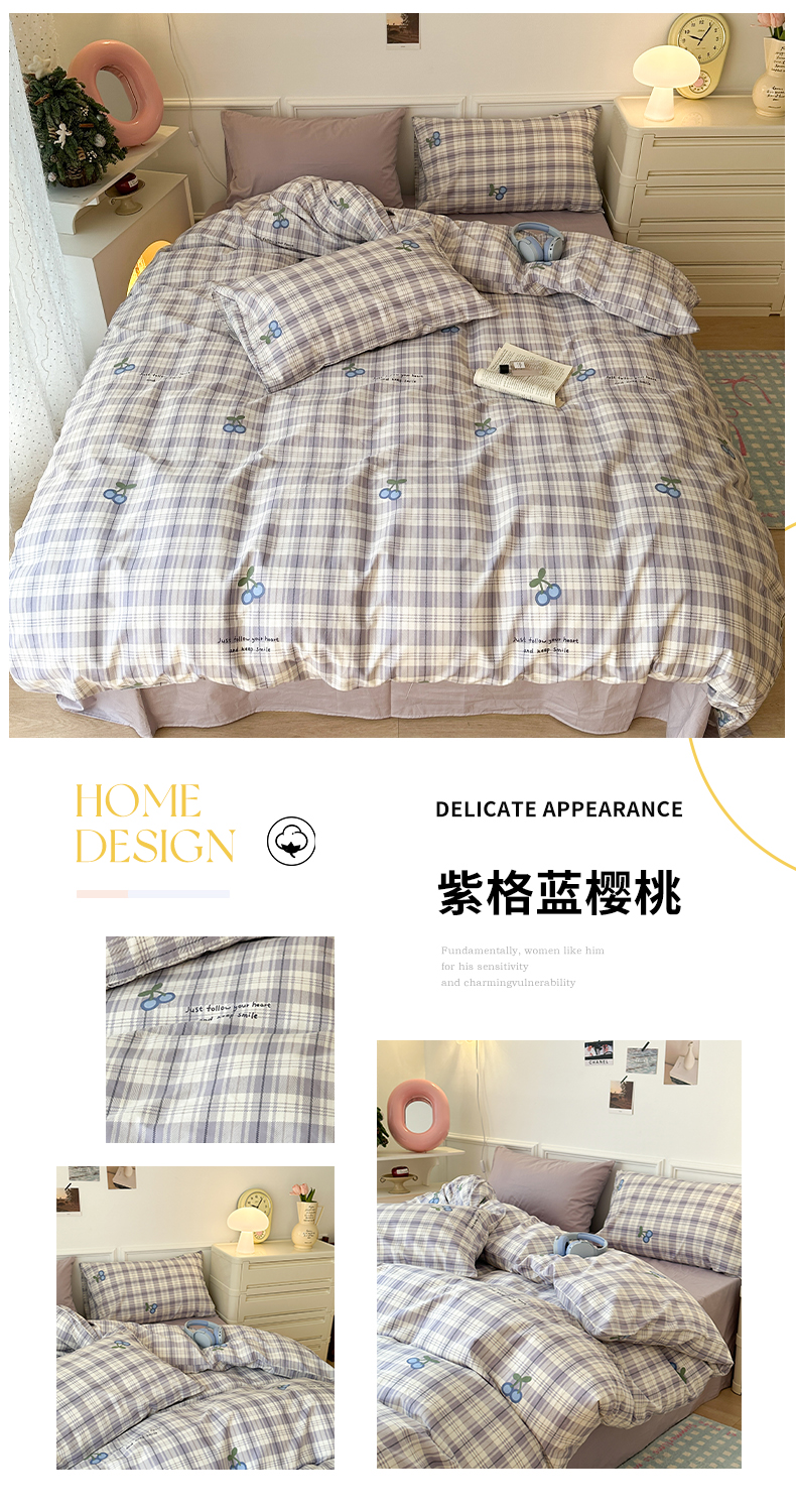 商品名称:昔可 2024新款全棉格子元素四件套 紫格蓝樱桃