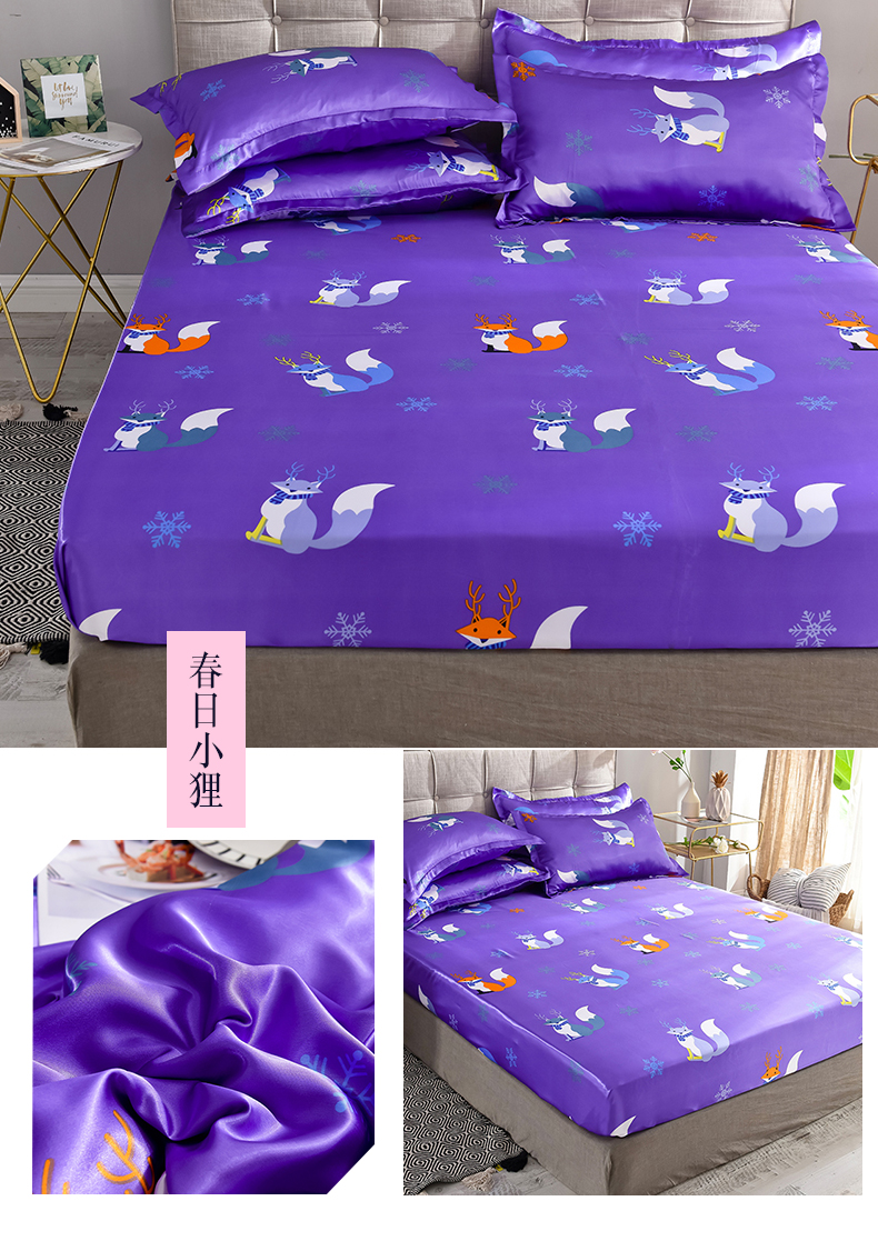 商品名称:经年 2025新款冰丝印花丝绸单床笠 春日小狸