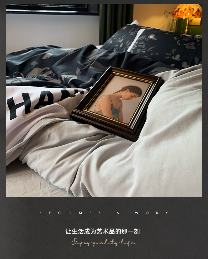 当前位置: 91家纺网 > 商品网购 > 床品套件 > 四件套 > 其它四件套 > 花沐 2024新款云朵水洗棉四件套 【云朵棉】轻奢黑花