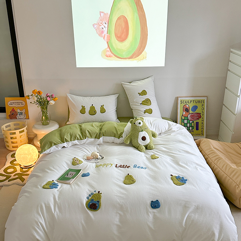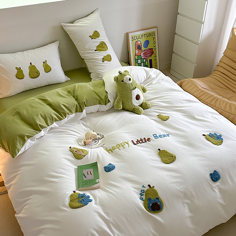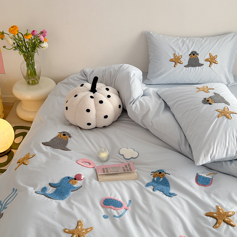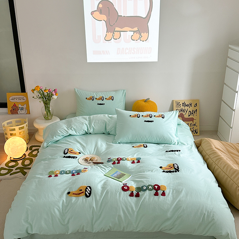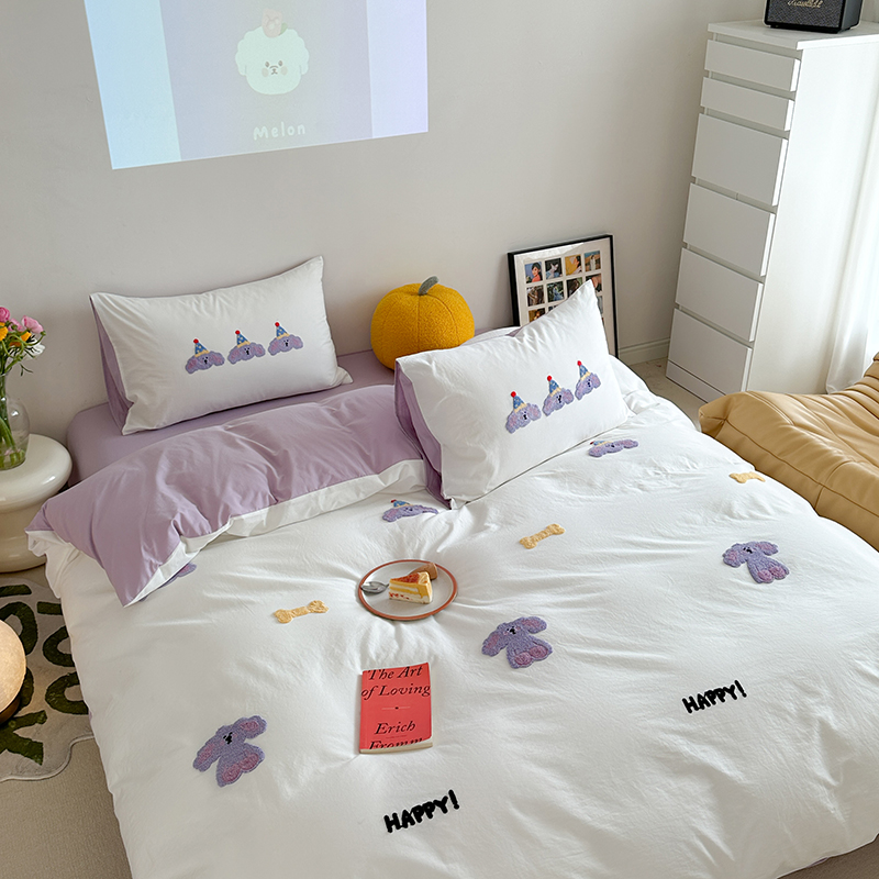 (总)柚子YOUTH 2025新款全棉纯棉工艺款13070贴布绣四件套,爱心小象,毛绒小狗,蘑菇女孩,星星法师