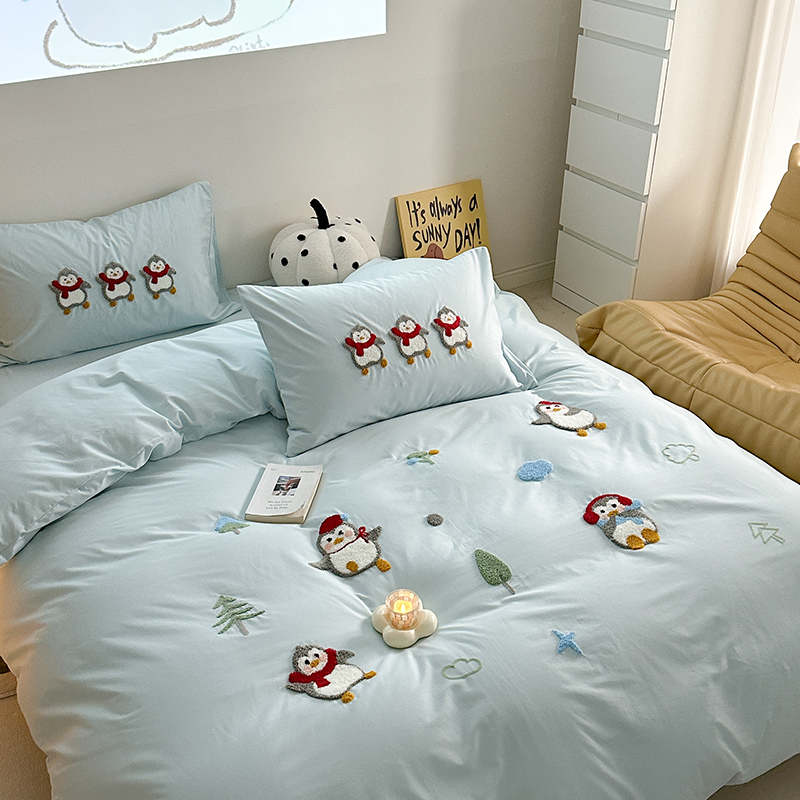(总)柚子YOUTH 2025新款双面泰迪绒毛巾绣四件套,甜甜圈,快乐企鹅,森林聚会,甜酷KT,小茄子,雪人王国