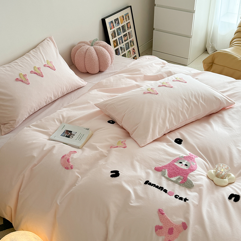 (总)柚子YOUTH 2025新款加厚牛奶绒卡通毛巾绣四件套-印加绣送同款毛毯,蛋糕小狗,公主猫,头套猫,兔兔花园,小伙伴,雪纳瑞