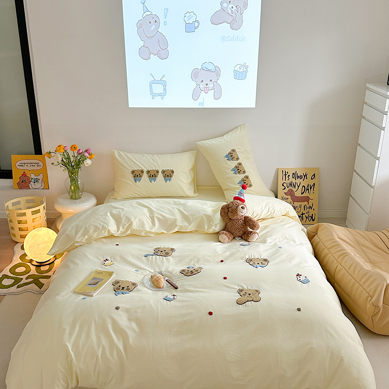 (总)柚子YOUTH 2025新款全棉双层纱贴布绣四件套,棒球熊猫,贝雷帽,冰淇淋小熊,格子玩偶,碎花小兔,小黑猫