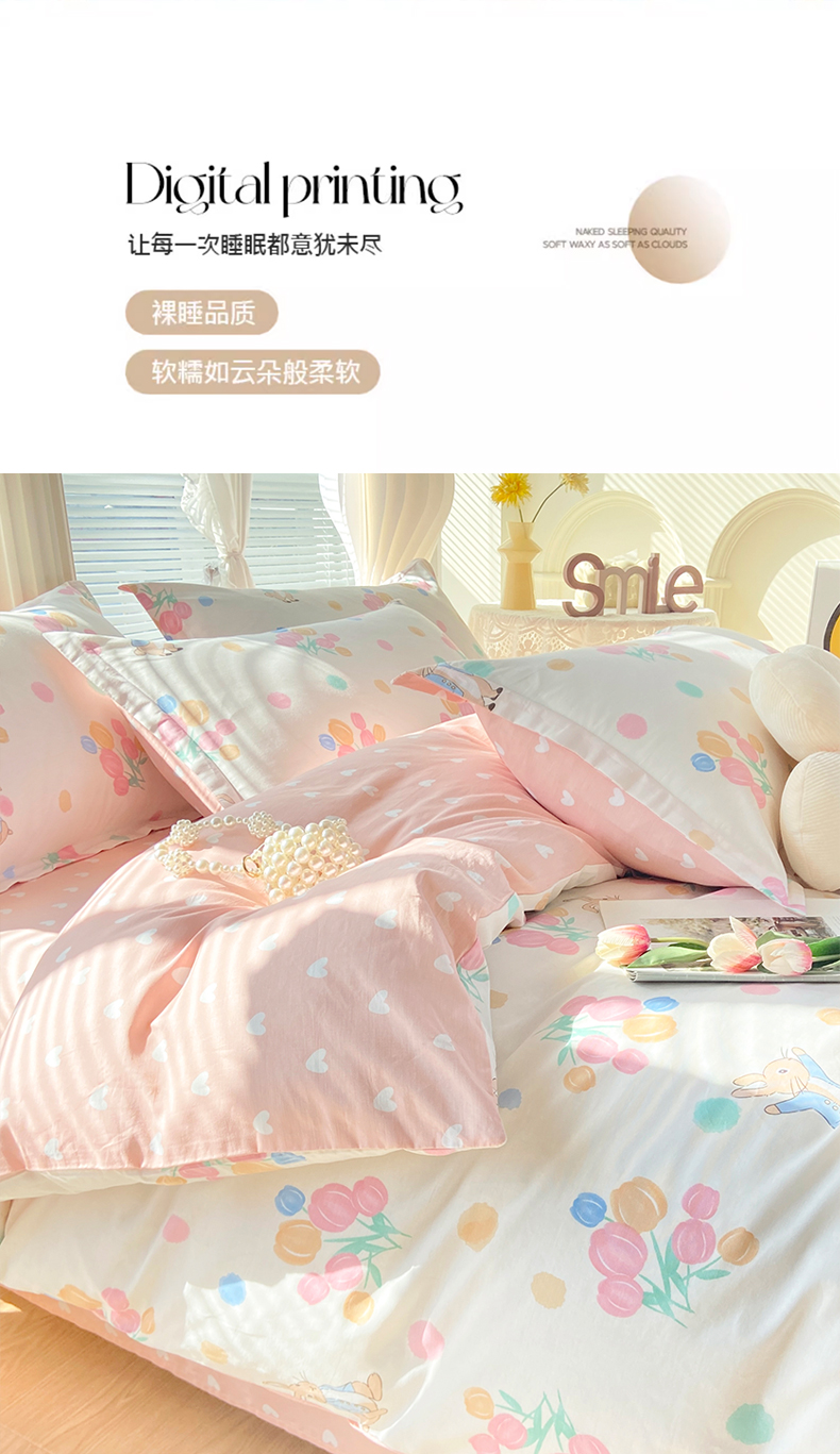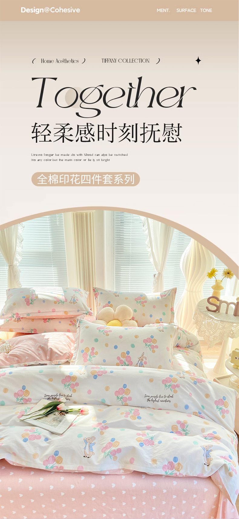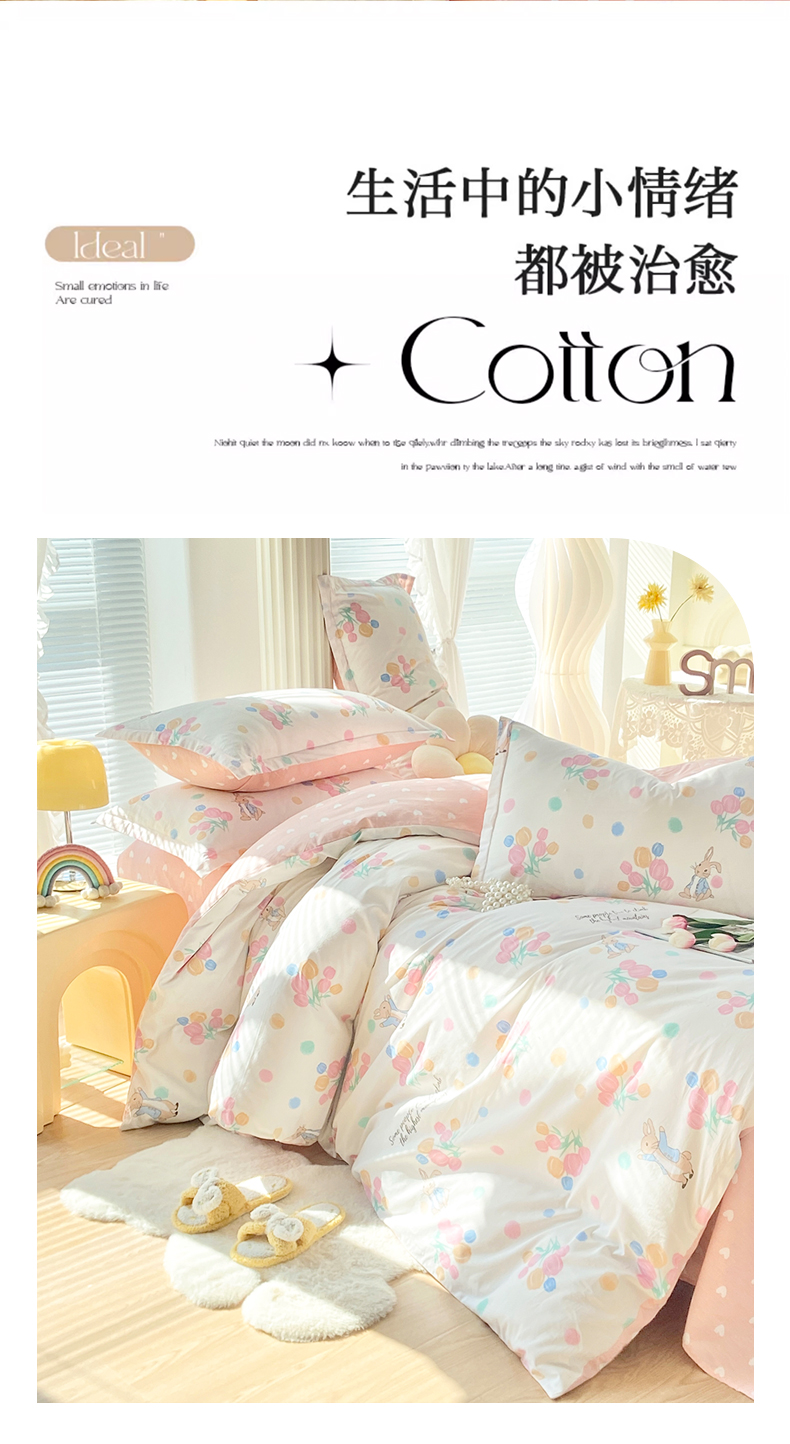 (总)珂博家纺 2025新款12868全棉纯棉小清新印花四件套学生宿舍三件套-系列二,繁花似锦,粉萼摇青,粉穹星语,浮青曳紫,结系花铃,汪星织梦,樱露垂角