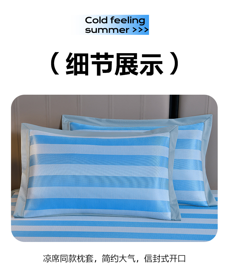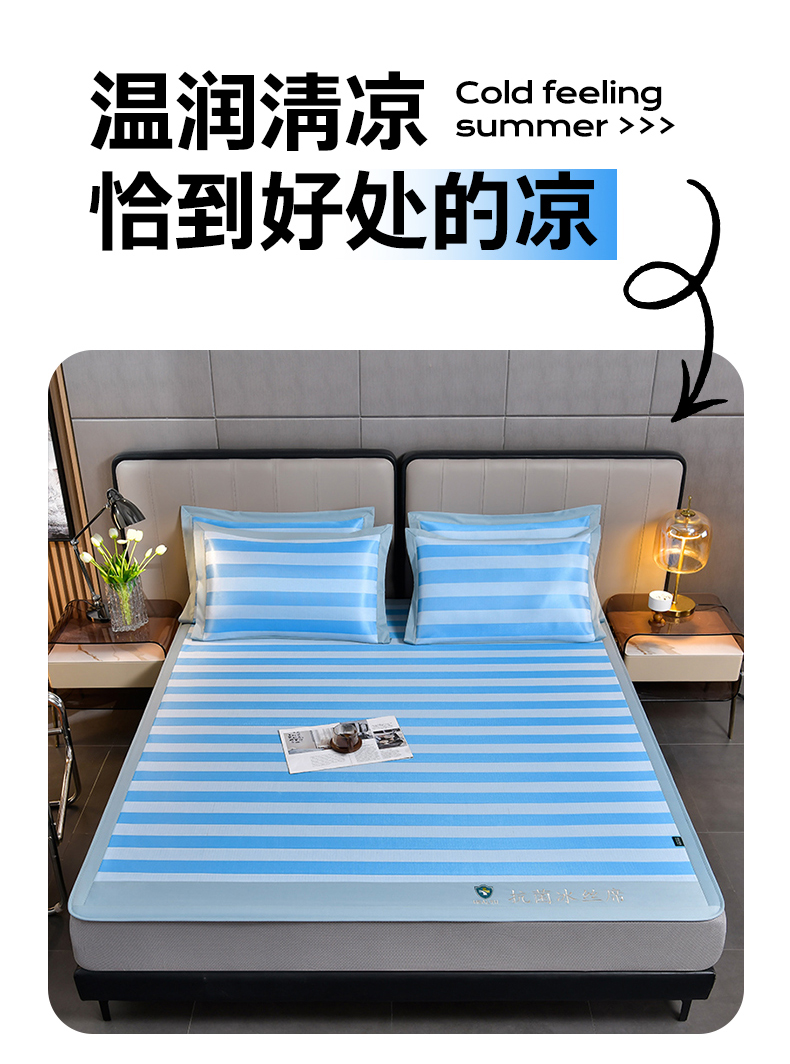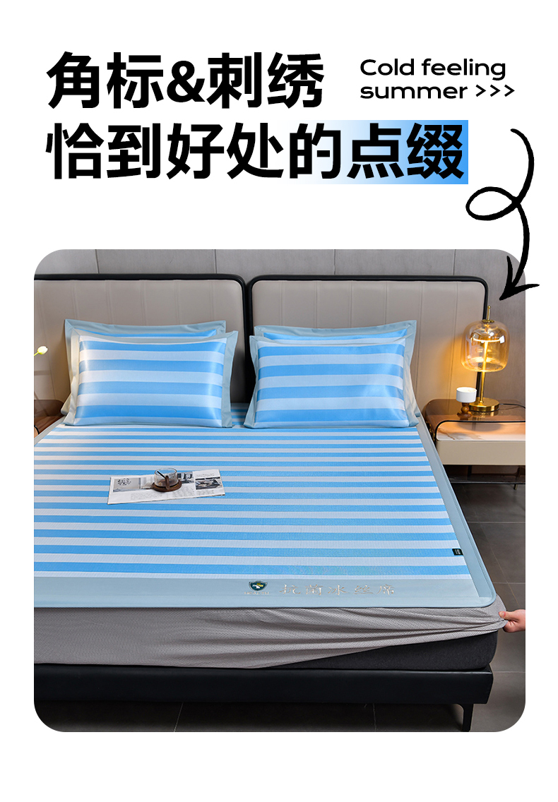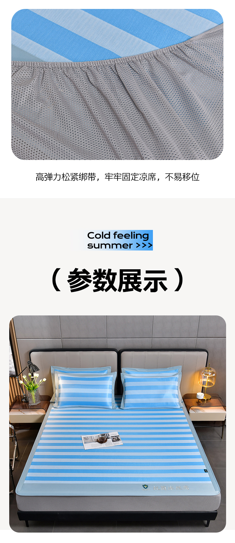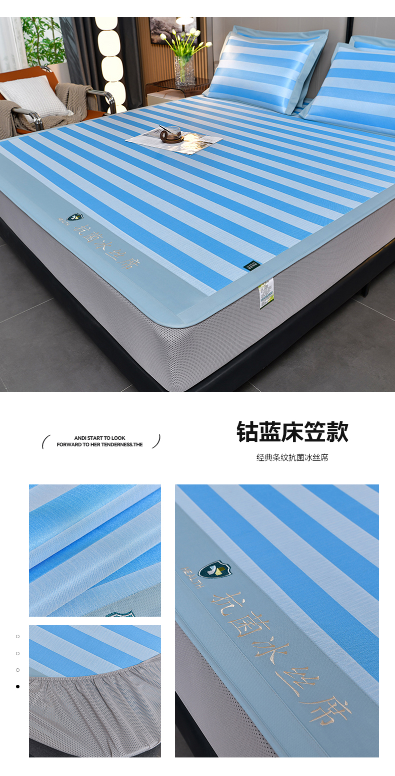 商品名称:简一 2024新款A类经典条纹抗菌冰丝席-床笠款 钴蓝床笠款