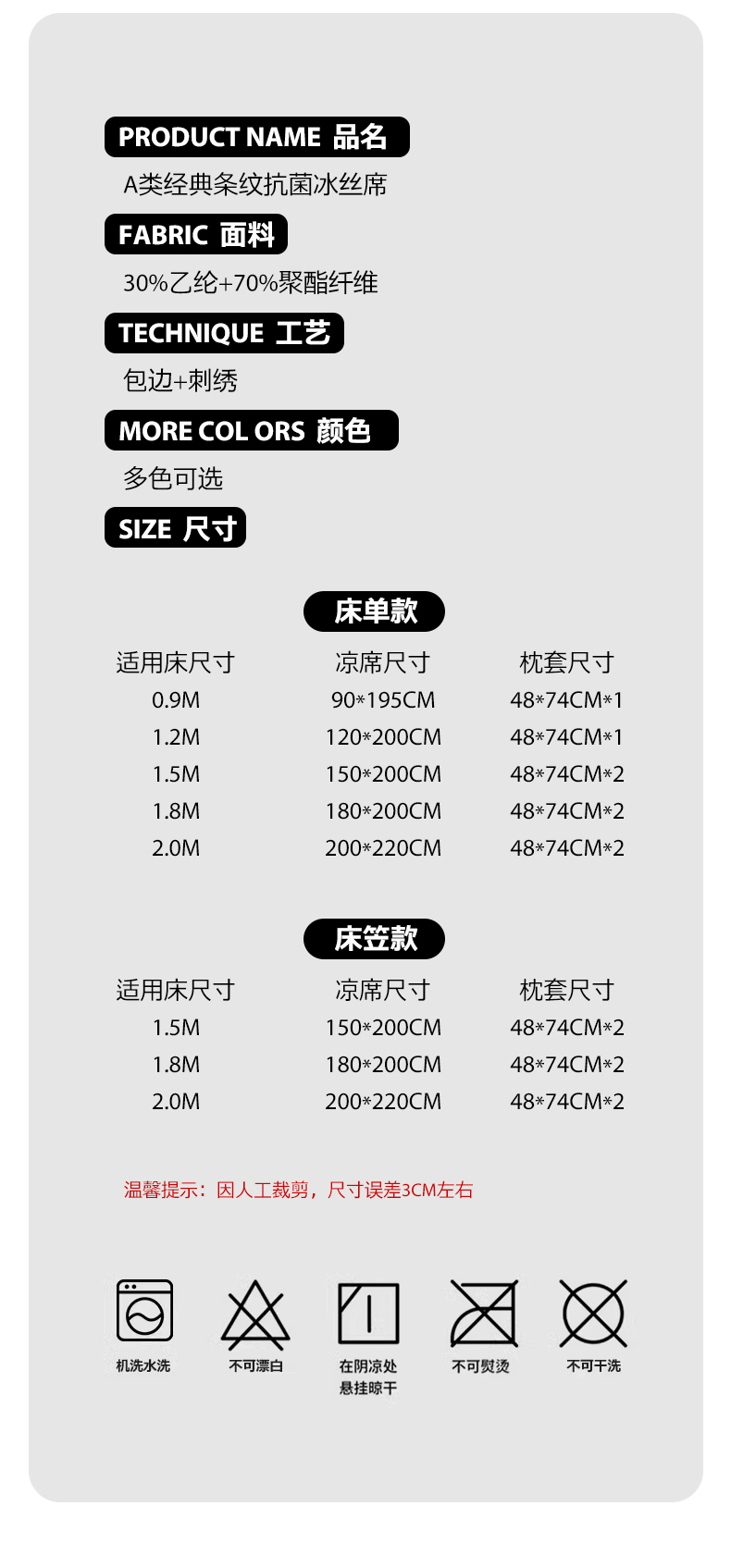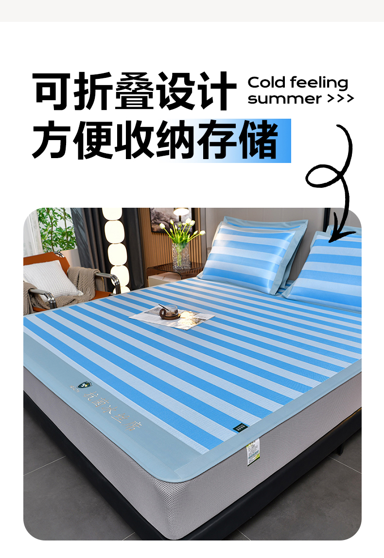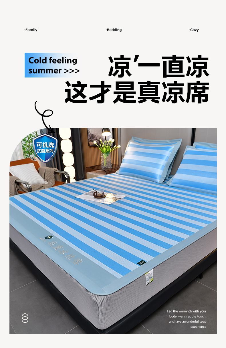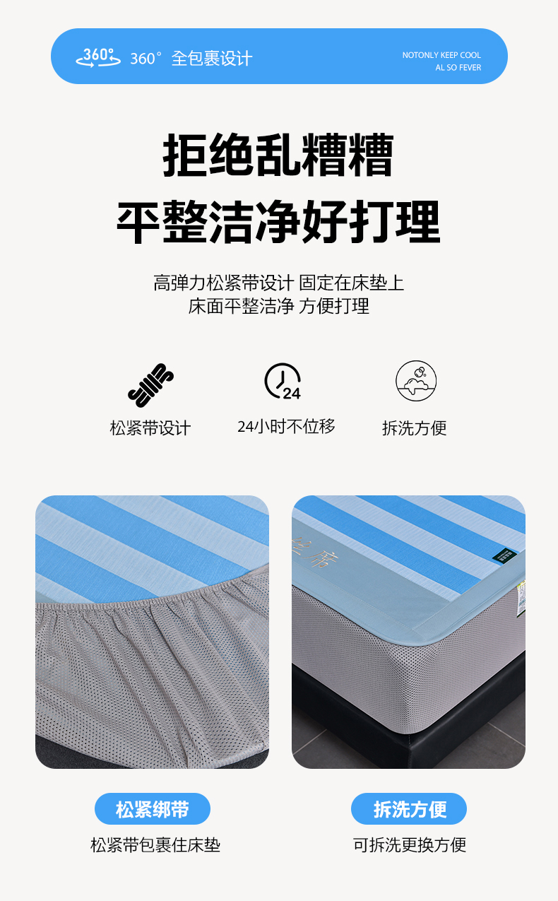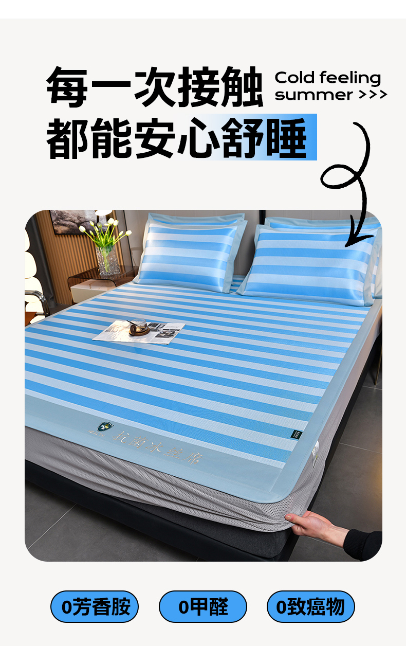 商品名称:简一 2024新款A类经典条纹抗菌冰丝席-床笠款 钴蓝床笠款