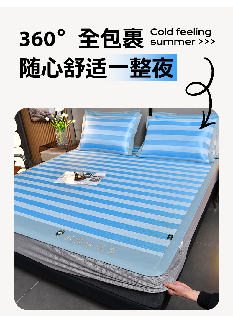 简一 2024新款A类经典条纹抗菌冰丝席-床笠款 钴蓝床笠款