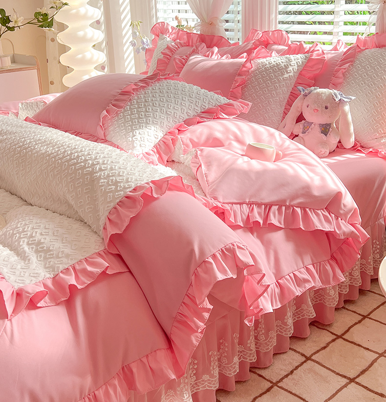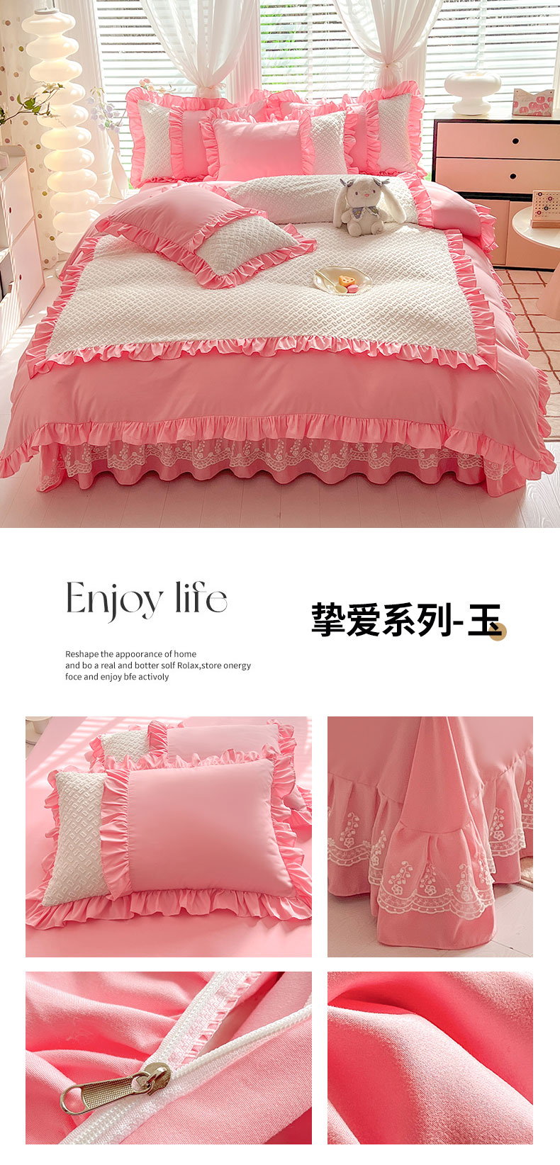 芭比蔓家纺 2024新款亲肤磨毛花边四件套---至爱 玉