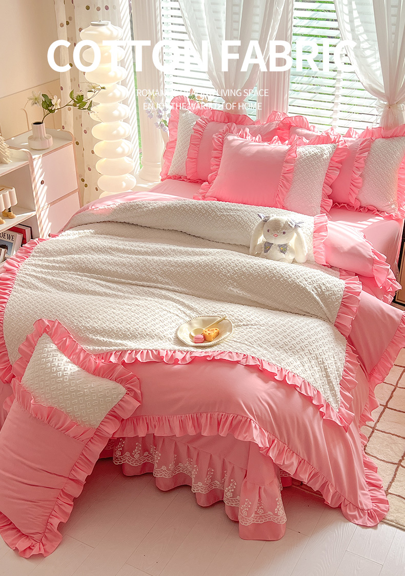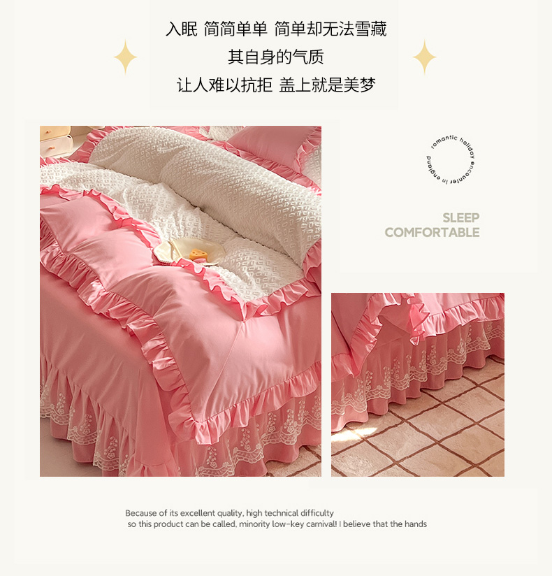 芭比蔓家纺 2025年新款雕花牛奶绒花边四件套-爱丽丝 爱丽丝-粉,爱丽丝-粉