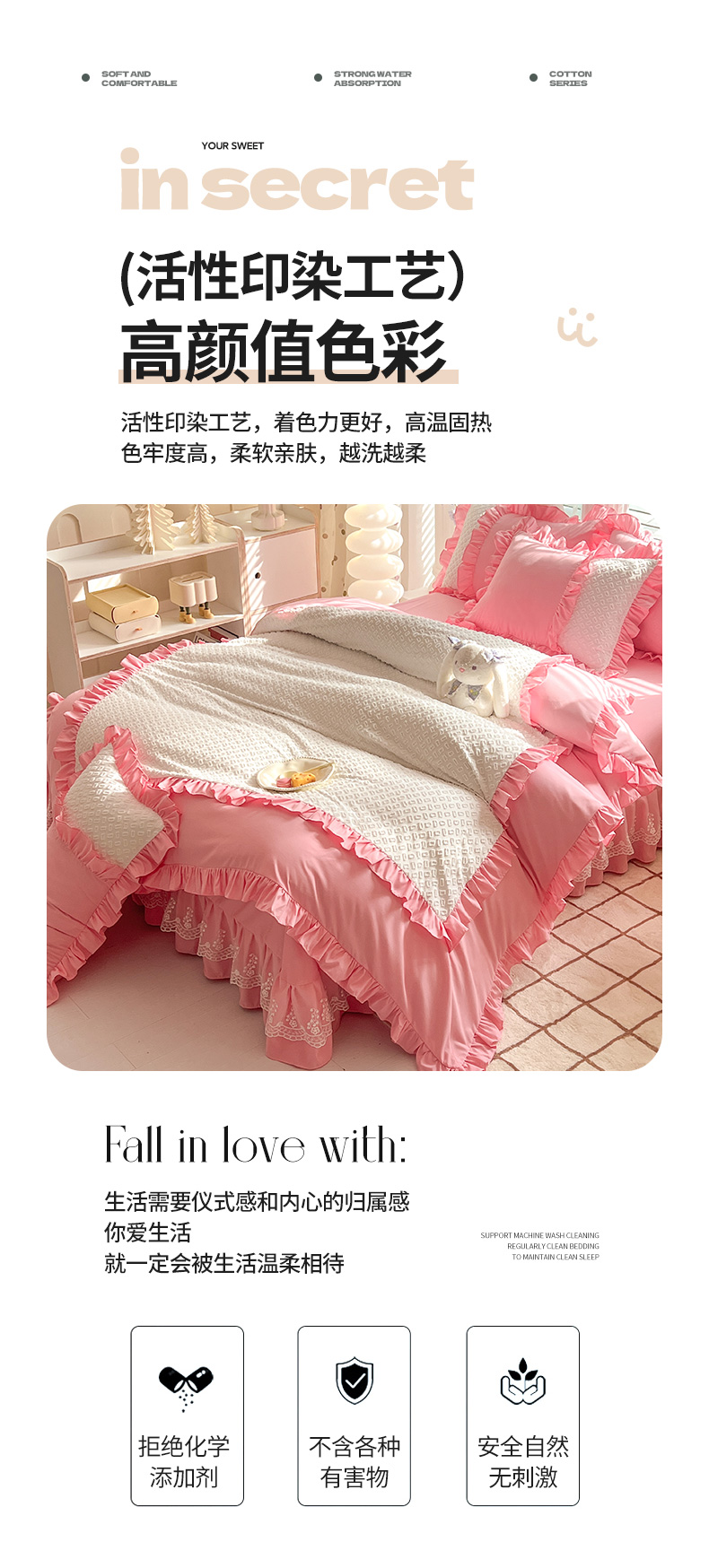 商品名称:芭比蔓家纺 2024新款亲肤磨毛花边四件套---至爱 玉