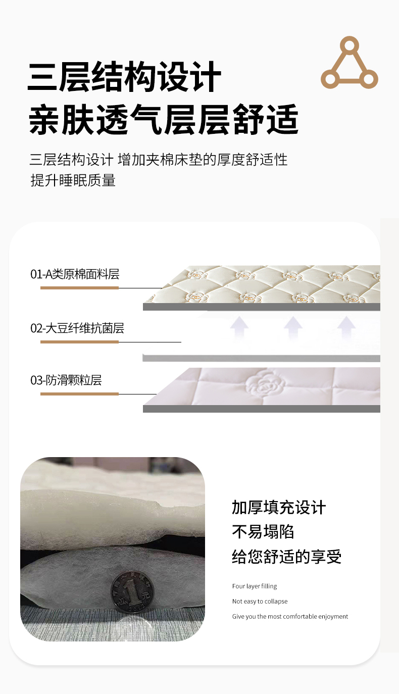 当前位置: 91家纺网 > 商品网购 > 床垫/床褥 > 普通床垫 > 鑫钰 2024新款A类原棉大豆抗菌床护垫-花语 花语-简约白