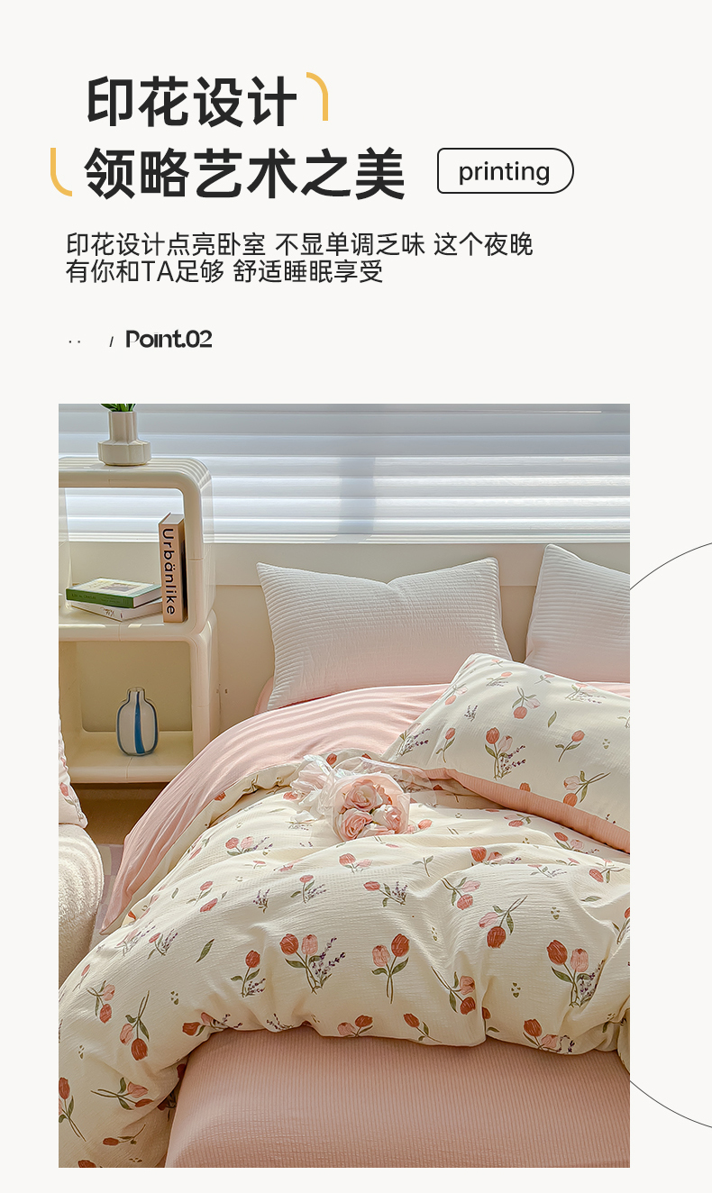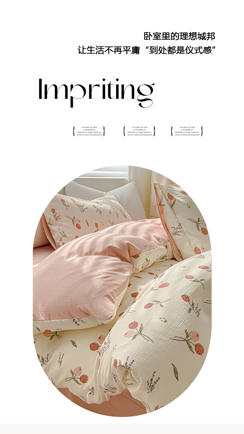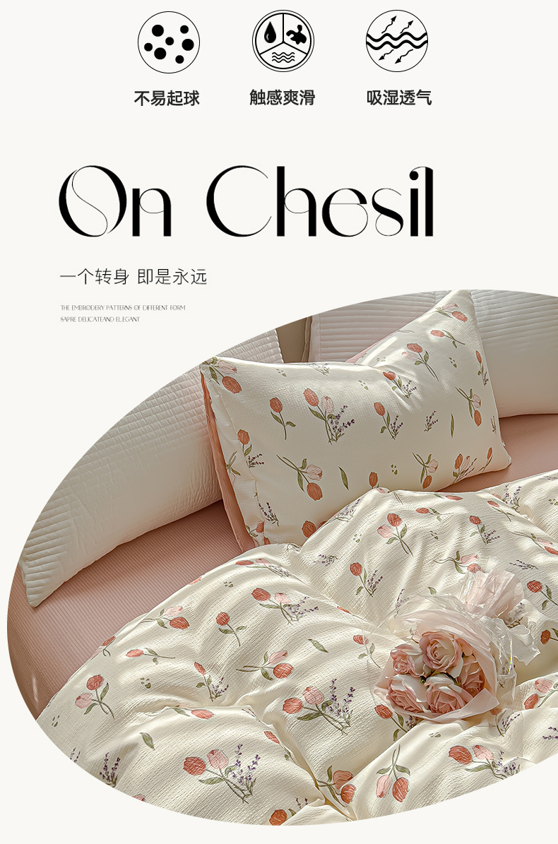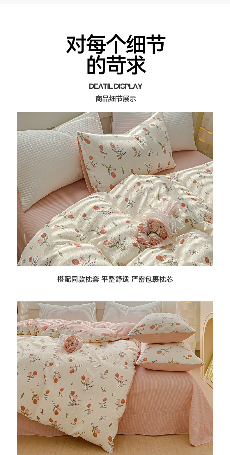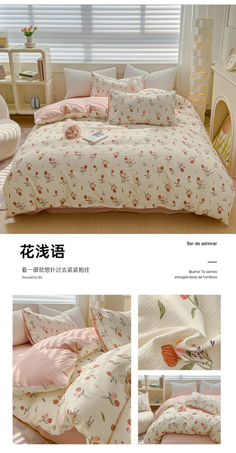 商品名称:可思家纺 2024新款A类水洗泡芙棉泡泡纱四件套 花浅语