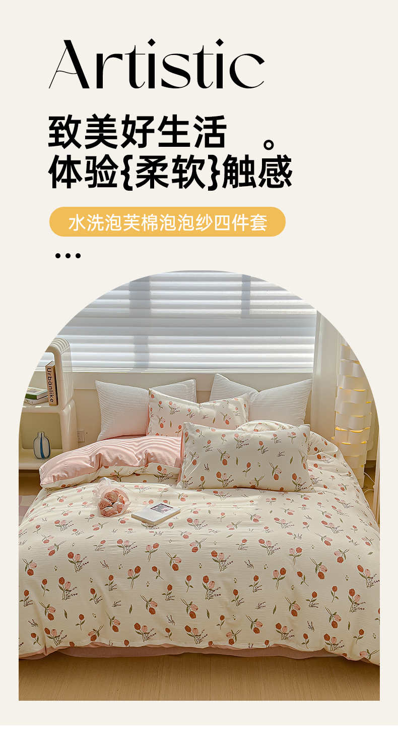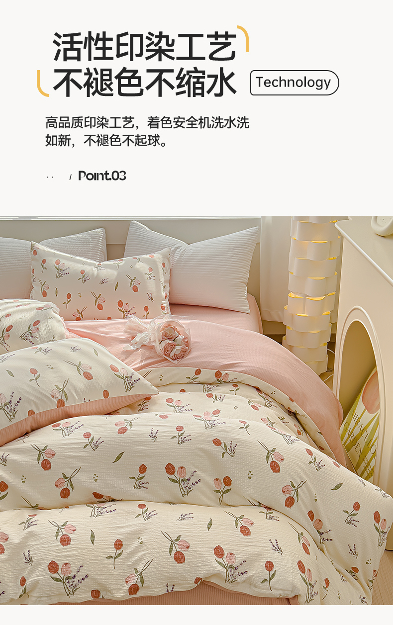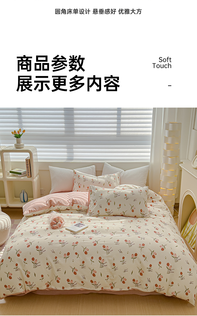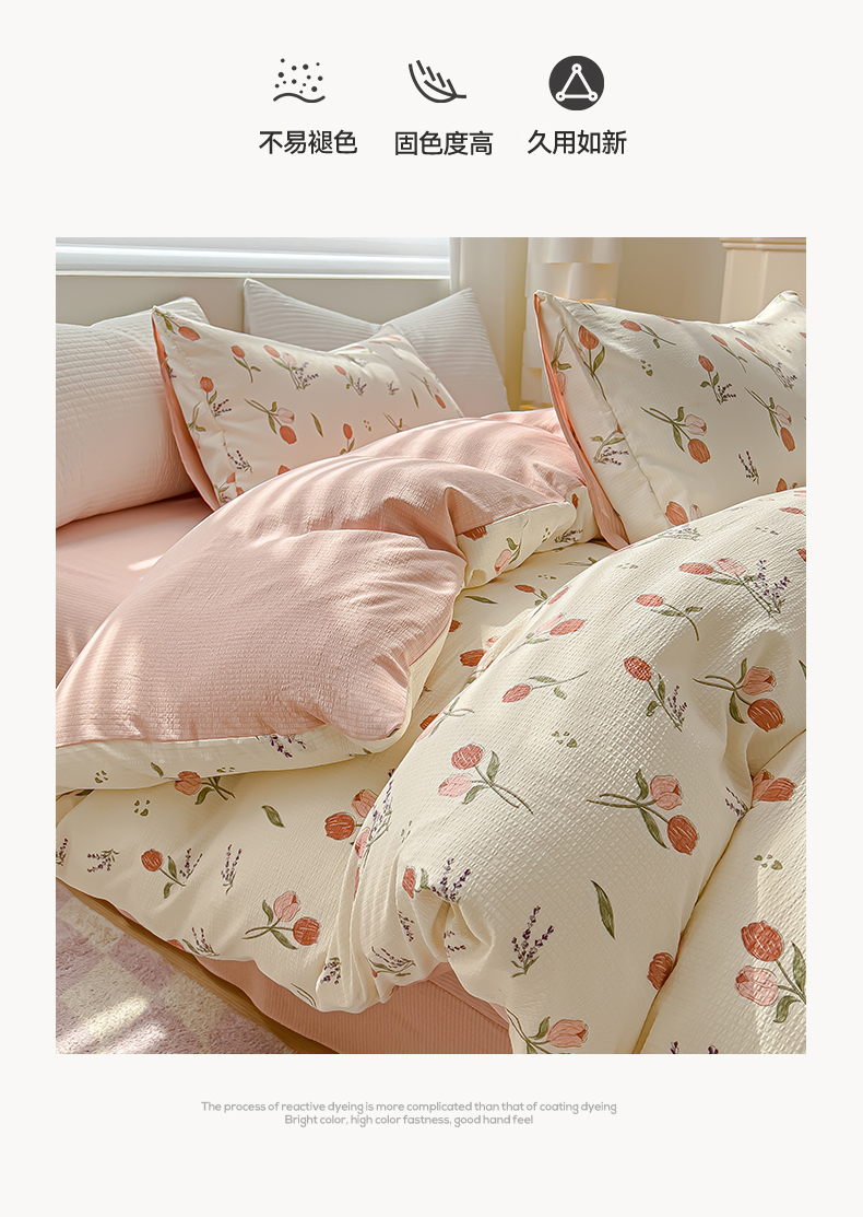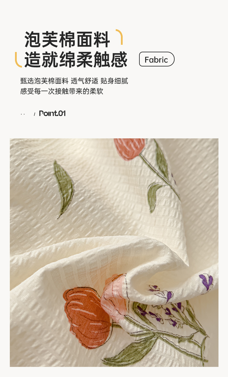 商品名称:可思家纺 2024新款A类水洗泡芙棉泡泡纱四件套 花浅语