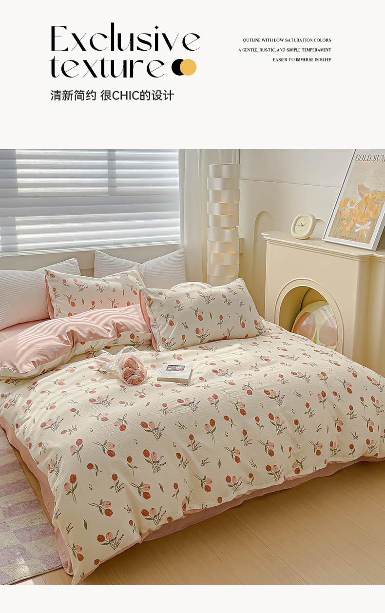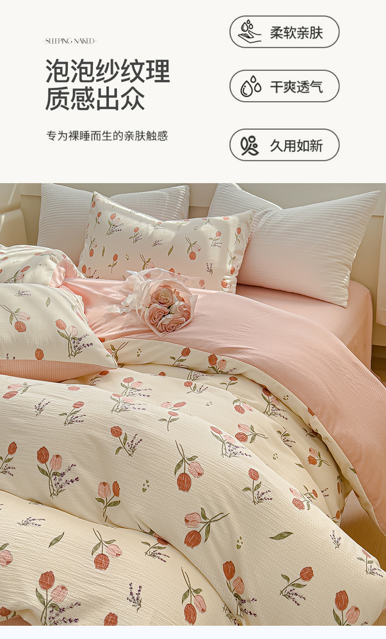 可思家纺 2024新款A类水洗泡芙棉泡泡纱四件套 花浅语