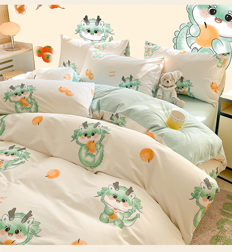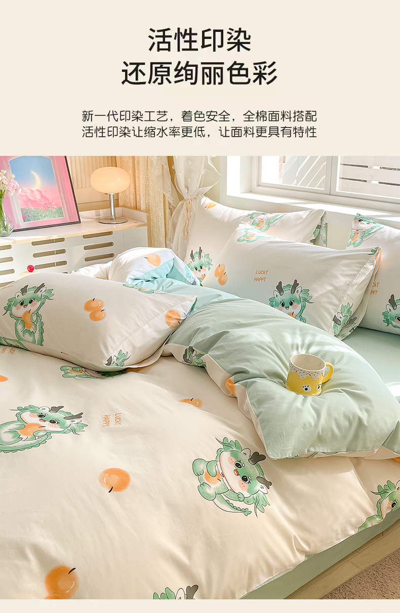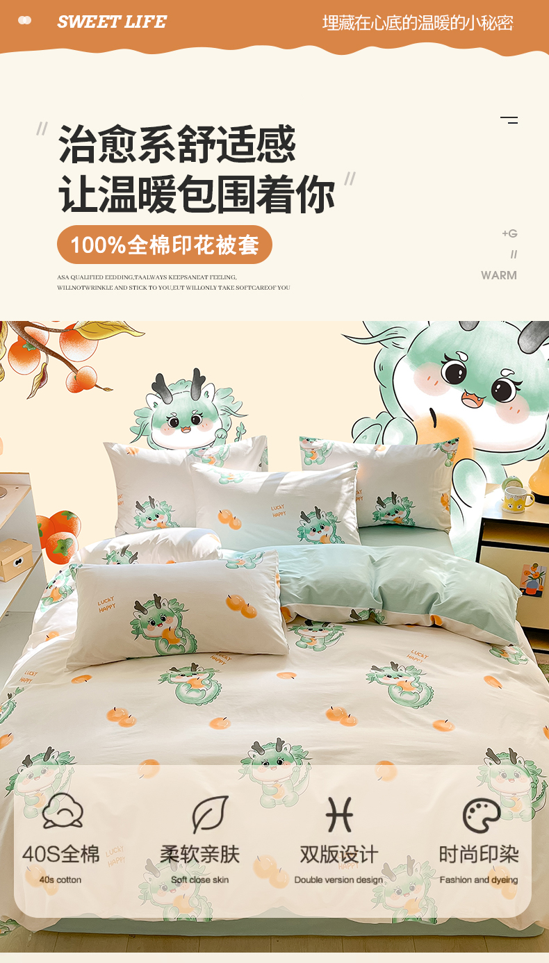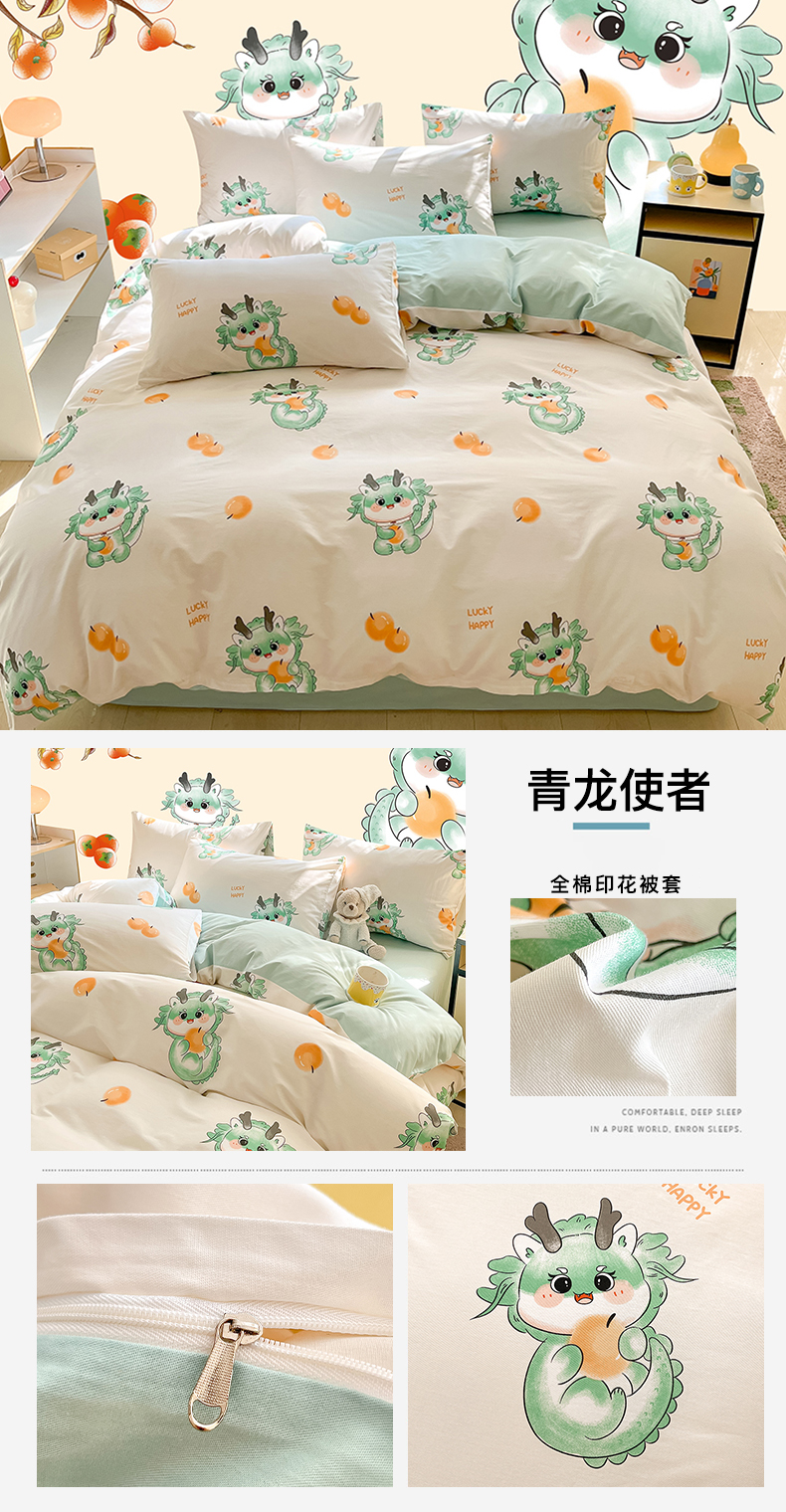 金鑫汇家纺 2024新款全棉纯棉卡通印花四件套单品系列-单被套 青龙使者