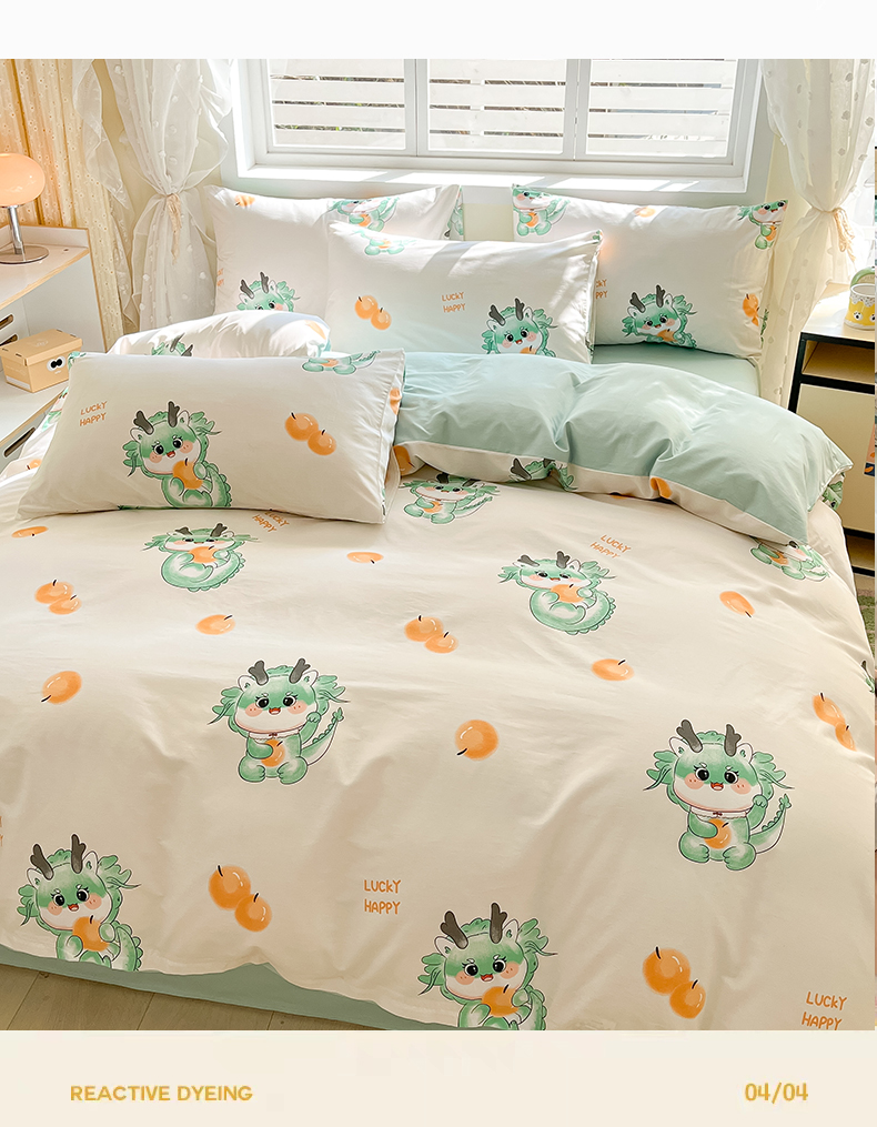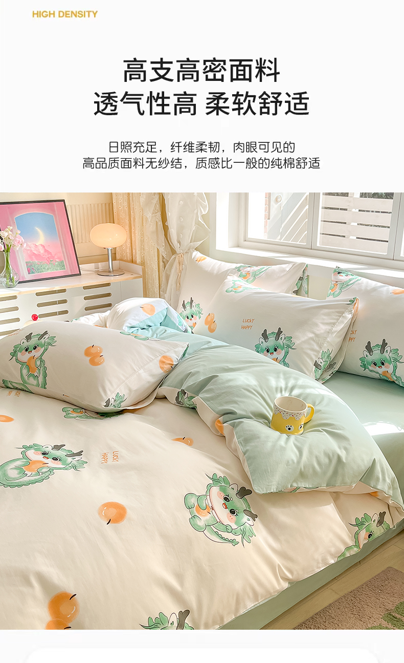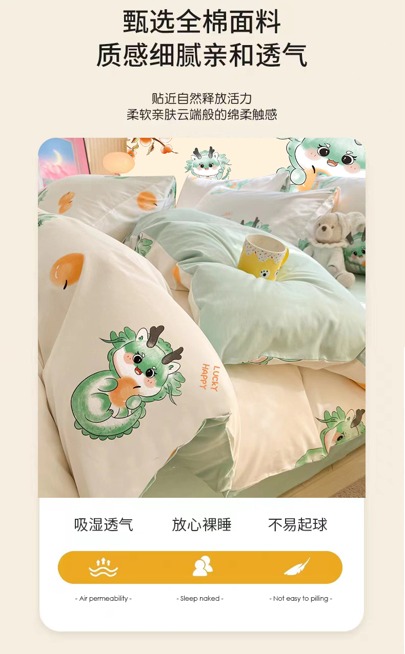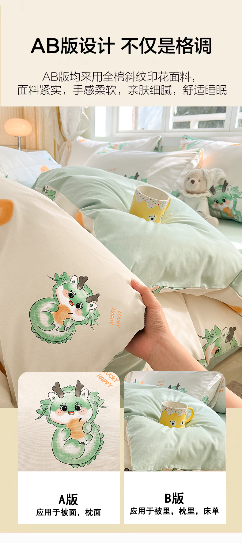 金鑫汇家纺 2024新款全棉纯棉卡通印花四件套单品系列-单被套 青龙使者