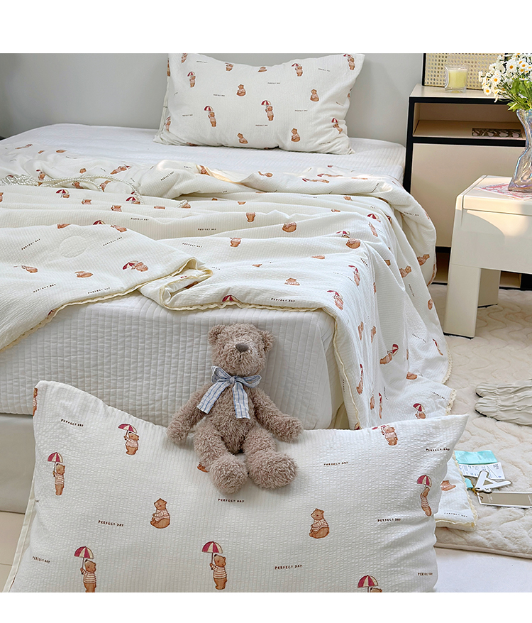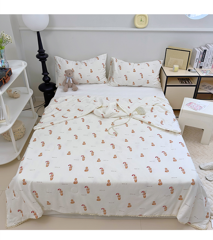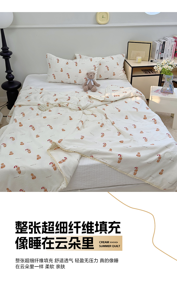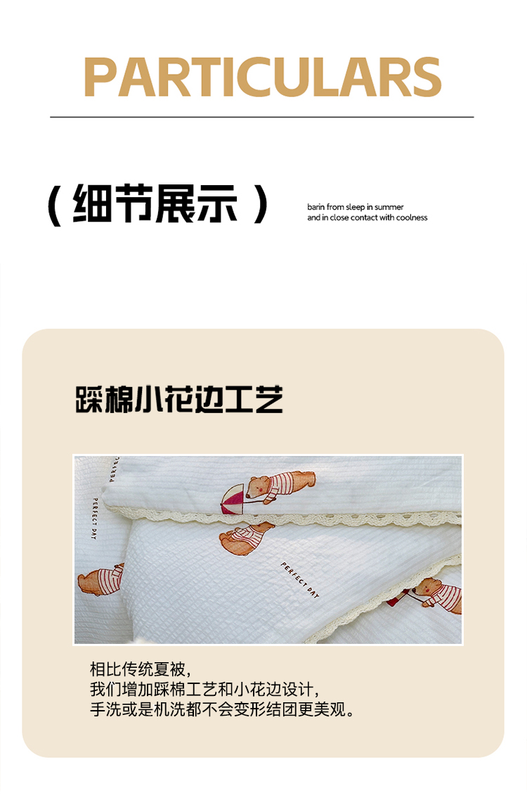商品名称:塔塔 云朵皱皱棉小花边夏被 可爱熊仔