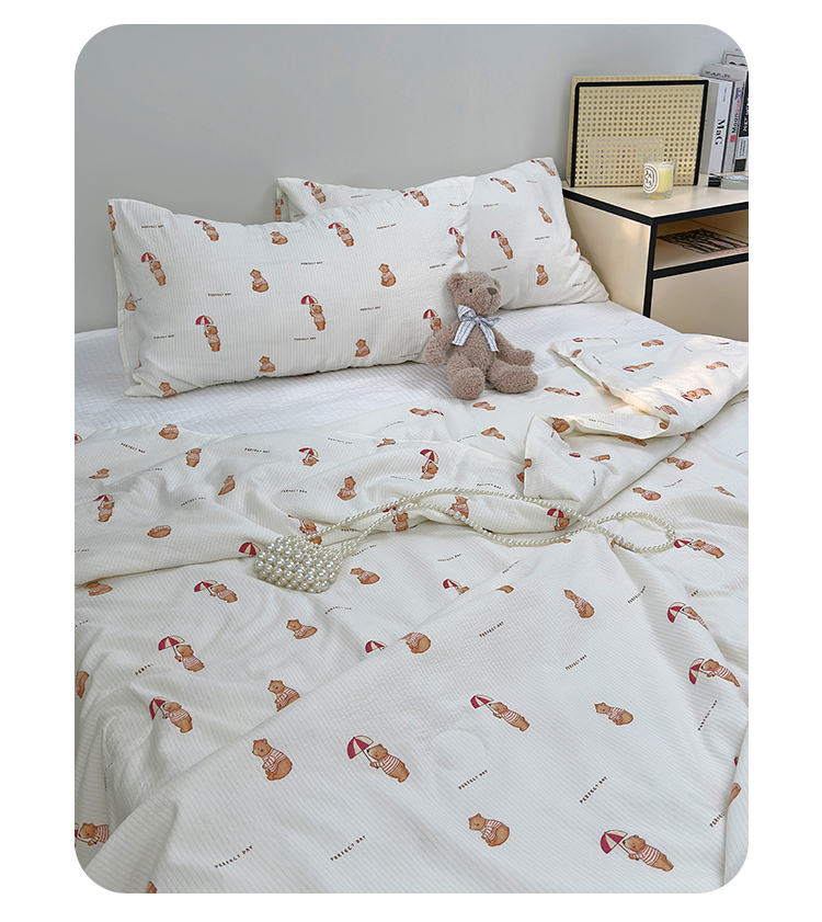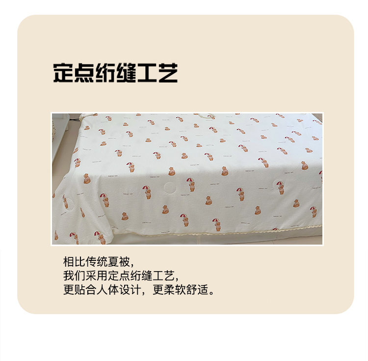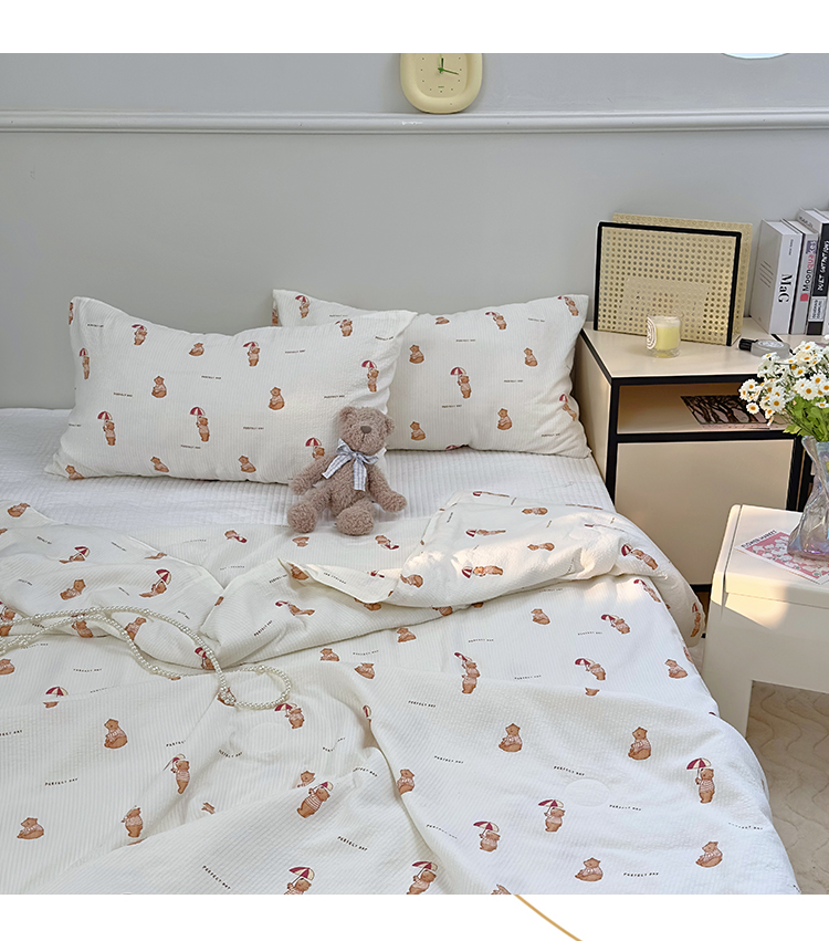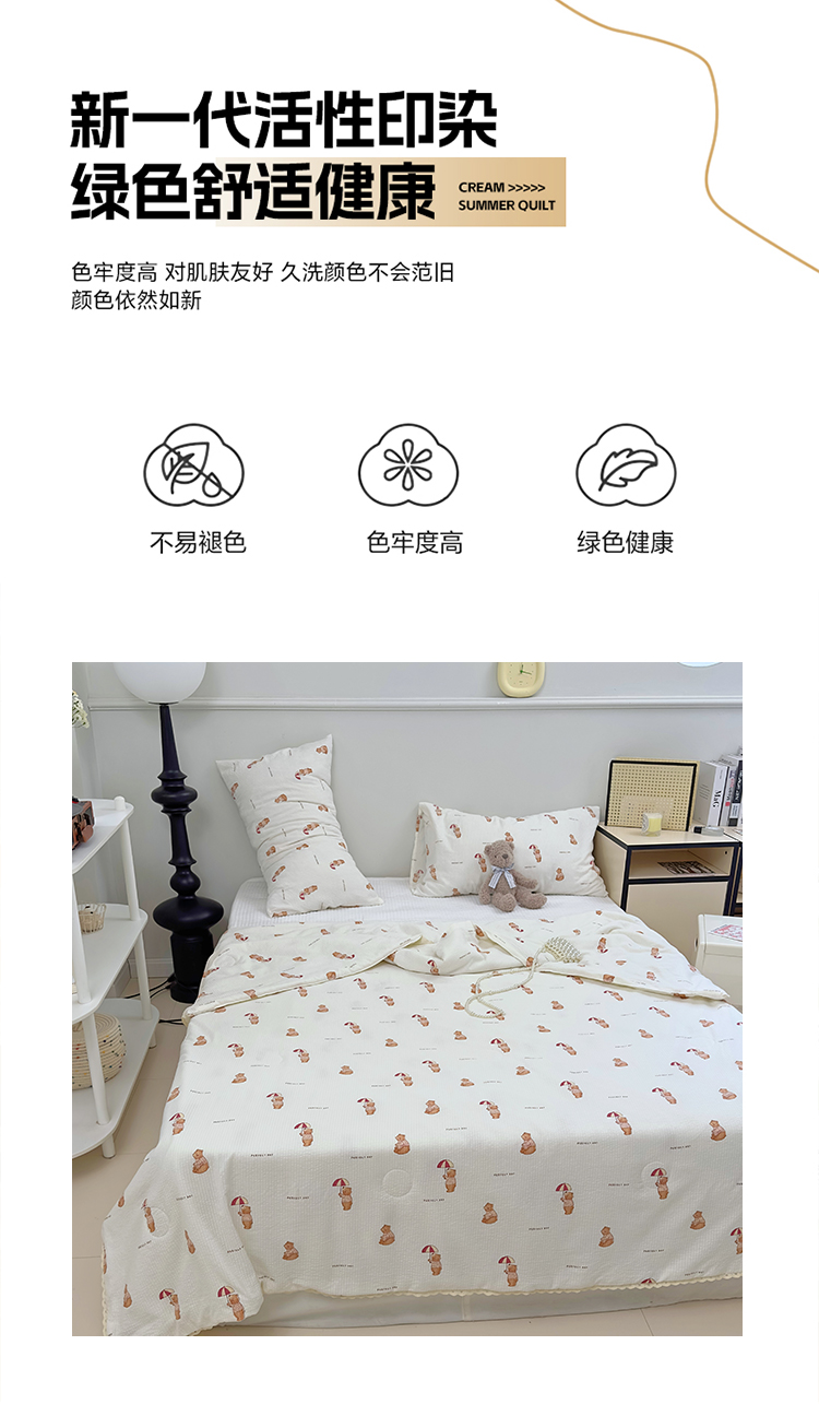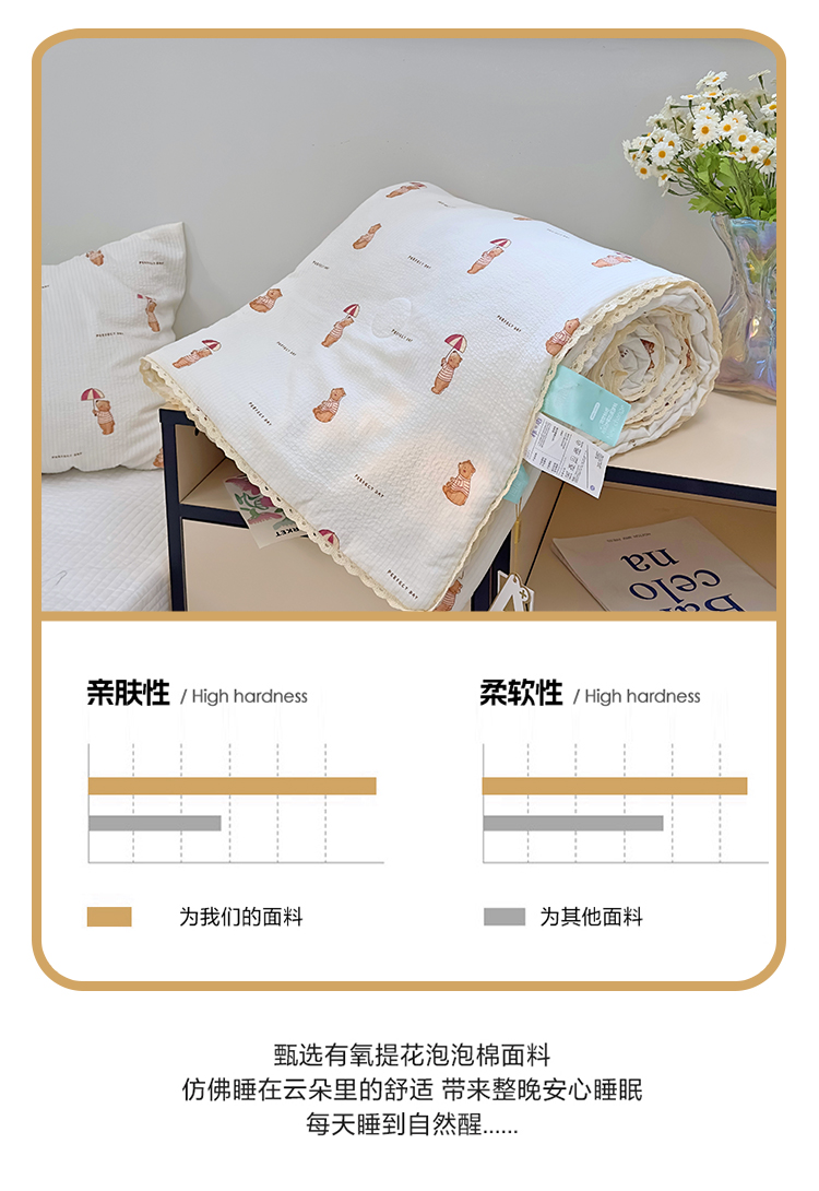 商品名称:塔塔 云朵皱皱棉小花边夏被 可爱熊仔