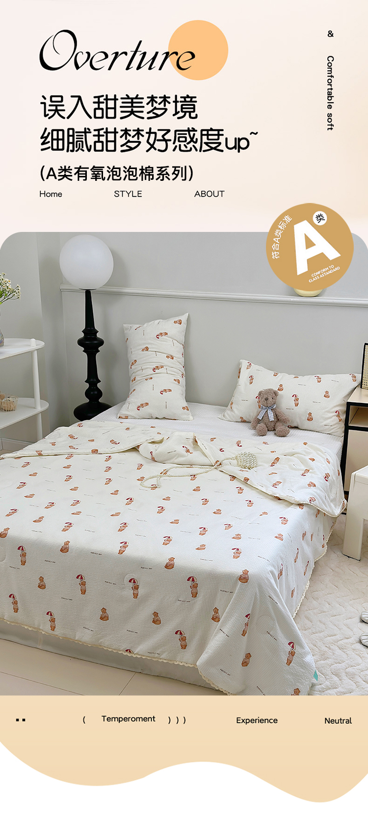 (总)TT.one 塔塔家居 2025新款有氧泡泡棉云朵皱皱棉小花边夏被,洛丽塔熊,可爱熊仔,森林物语,兔兔莓莓,云朵熊,紫色郁金香,曼妙花园,猫咪酱,苹果乐园,山茶花