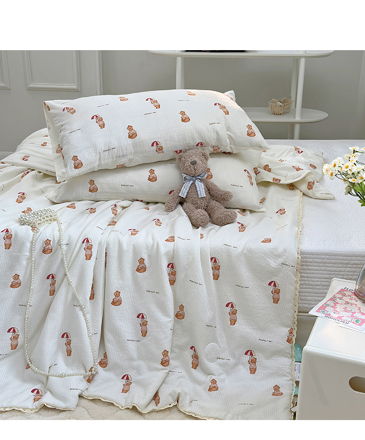 塔塔 云朵皱皱棉小花边夏被 可爱熊仔