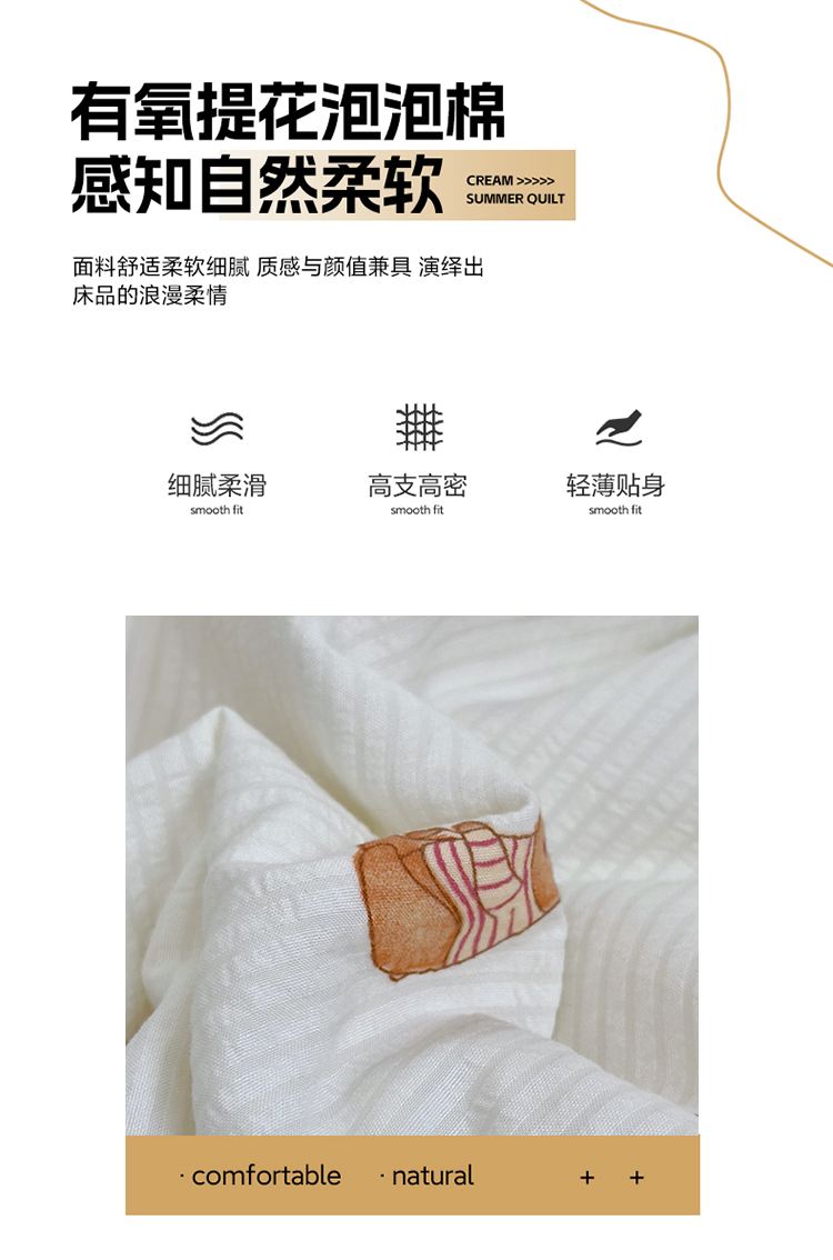 (总)TT.one 塔塔家居 2025新款云朵泡泡棉贝壳边大豆夏被,泡泡橙,泡泡白,泡泡粉,泡泡紫,泡泡绿,泡泡蓝