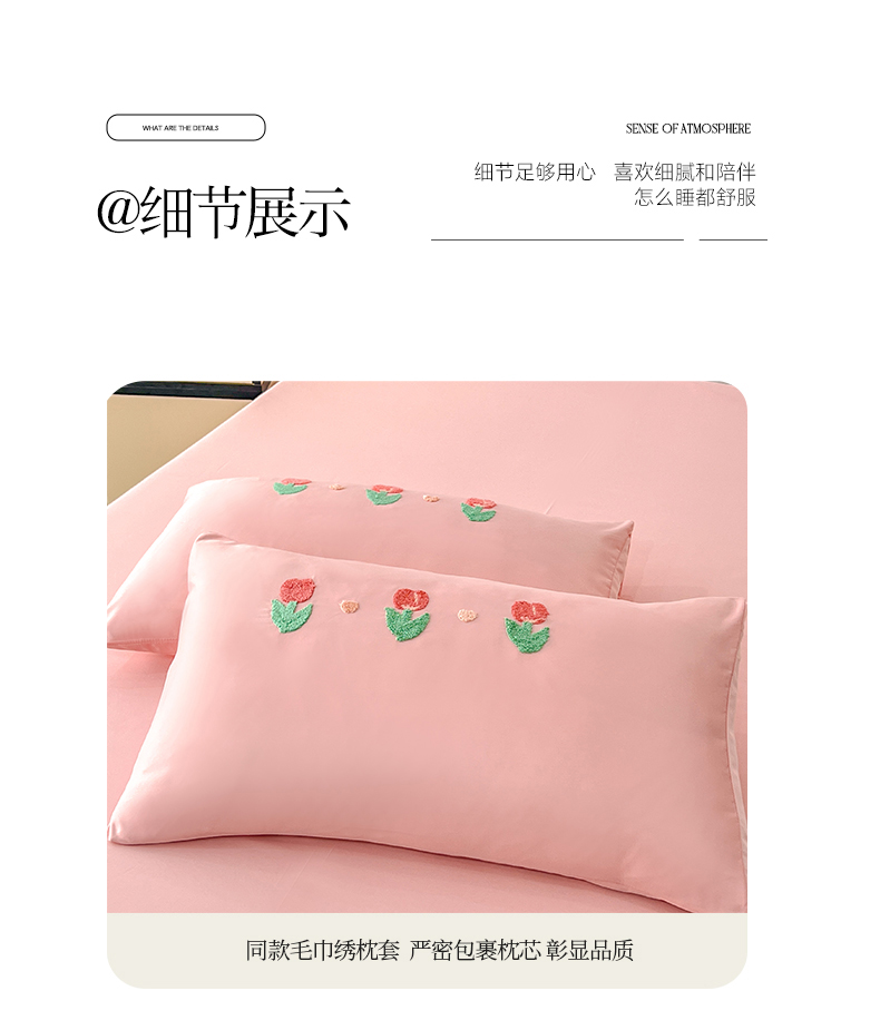 艾米家居 2025水洗真丝四件套毛巾绣四件套-郁金香系列 豆沙
