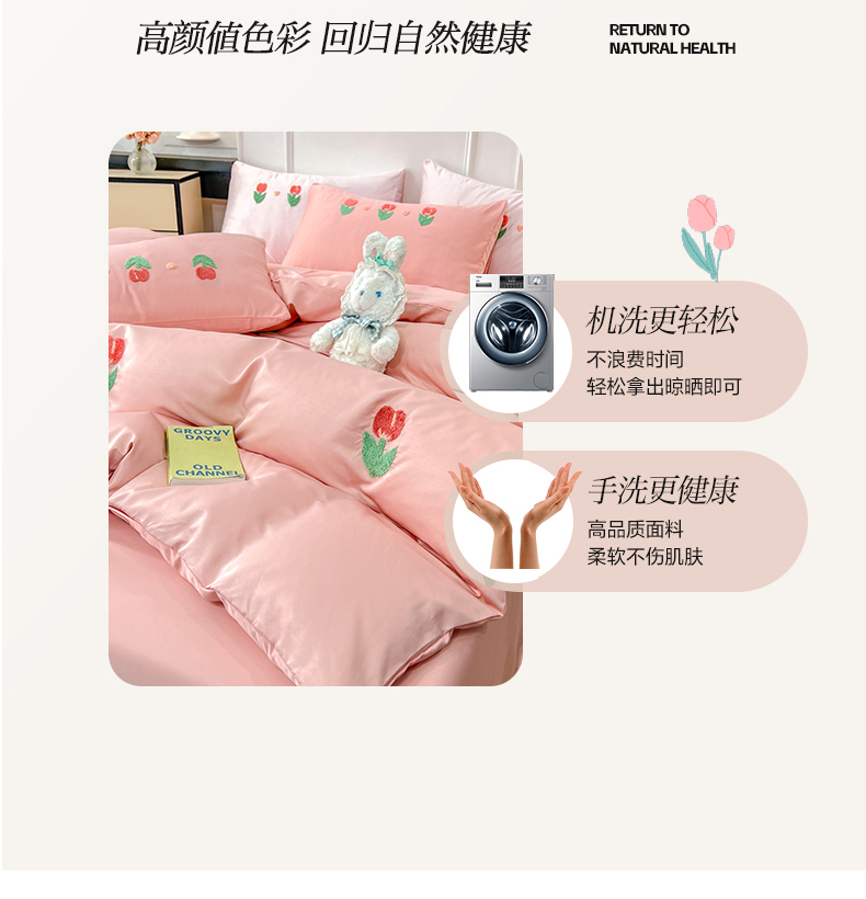 商品名称:艾米家居 2025水洗真丝四件套毛巾绣四件套-郁金香系列 豆沙