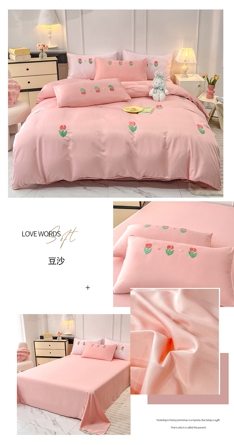(总)艾米家居 2025新款水洗真丝刺绣四件套-爱心系列,爱心白,爱心豆沙,爱心粉,爱心黄,爱心水绿