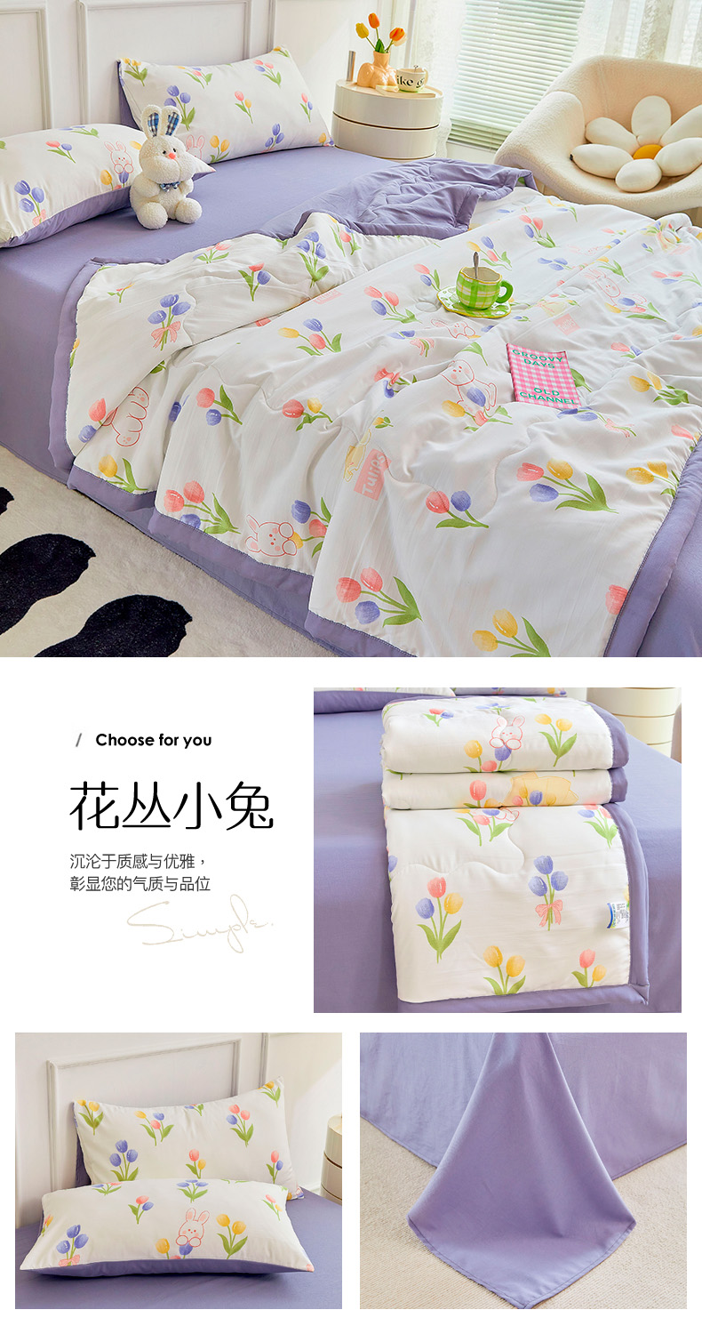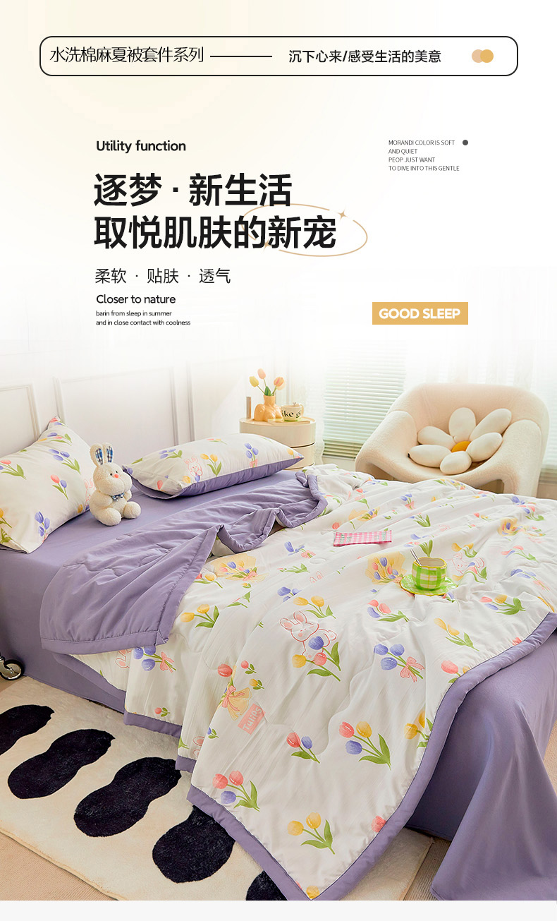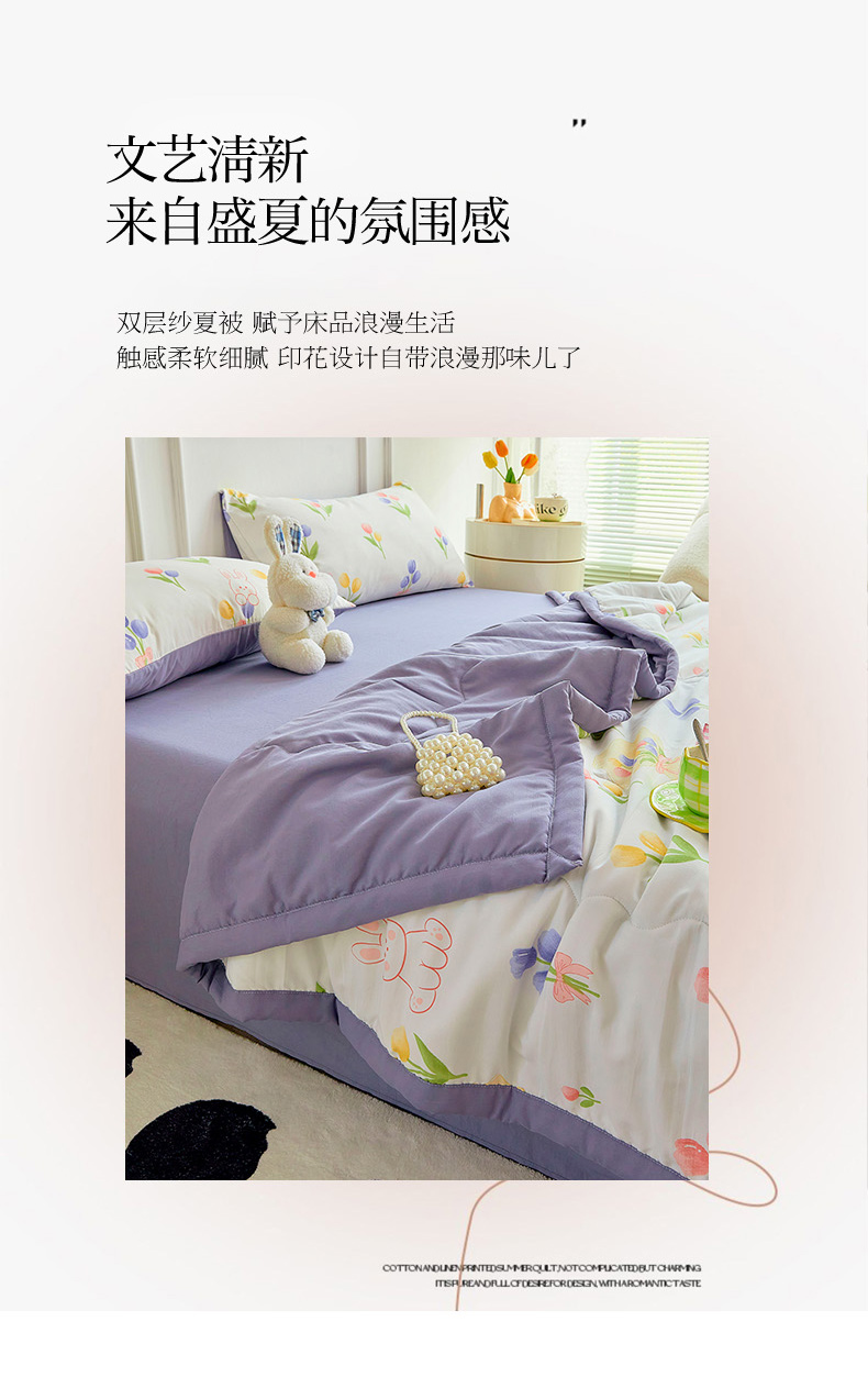 • 91家纺网 家纺一手货源 找家纺 卡斯诺 2025新款水洗棉麻双层纱夏被 (下载包包含买家秀)花丛小兔