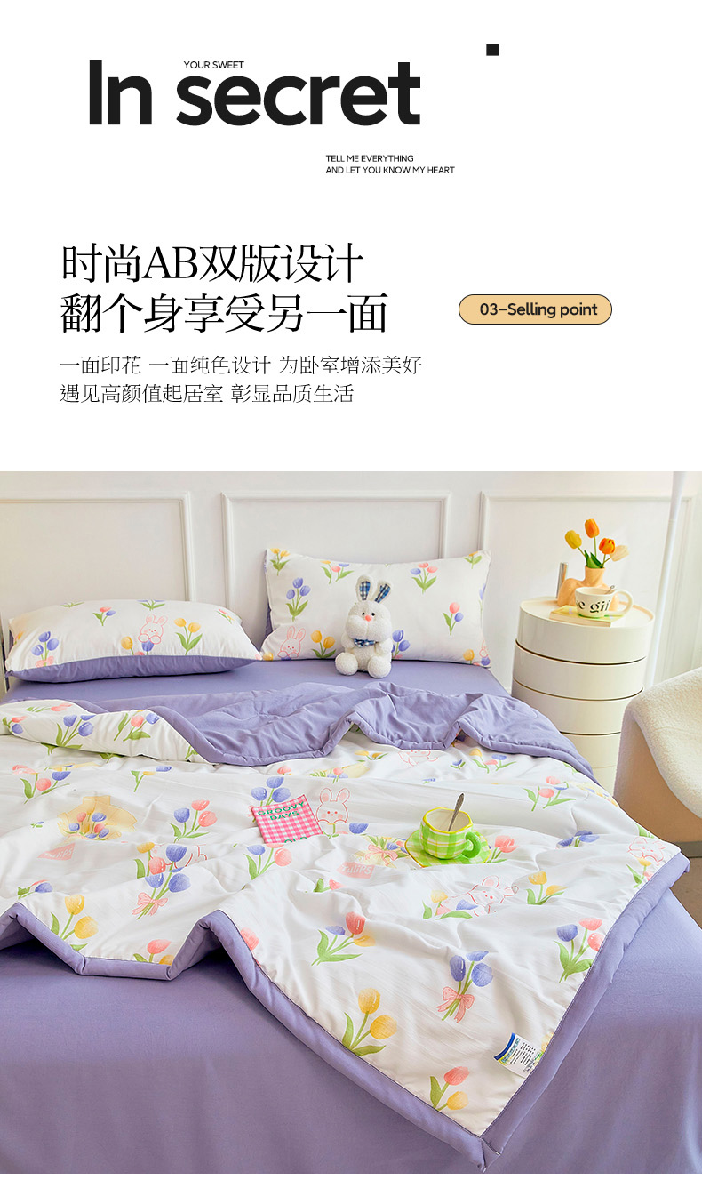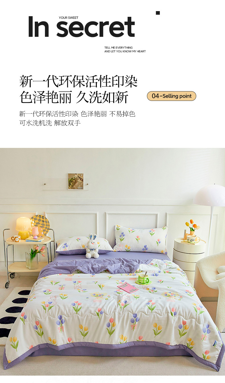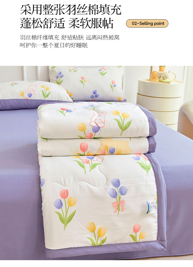 • 91家纺网 家纺一手货源 找家纺 卡斯诺 2025新款水洗棉麻双层纱夏被 (下载包包含买家秀)花丛小兔