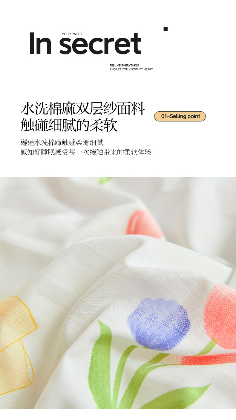 卡斯诺 2025新款水洗棉麻双层纱夏被 (下载包包含买家秀)花丛小兔