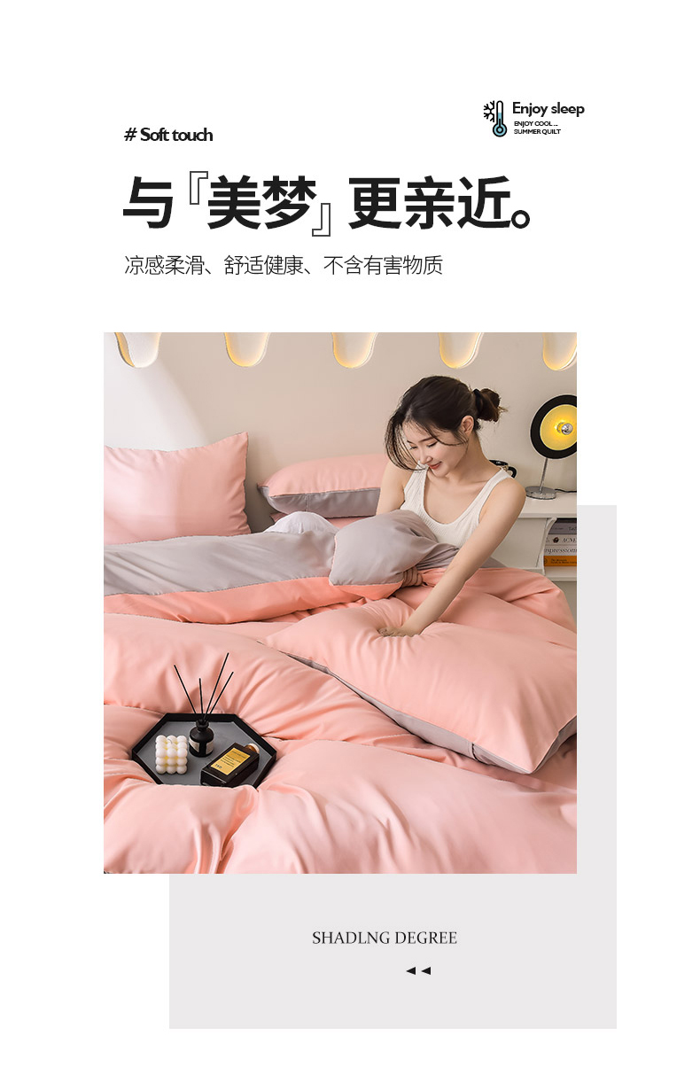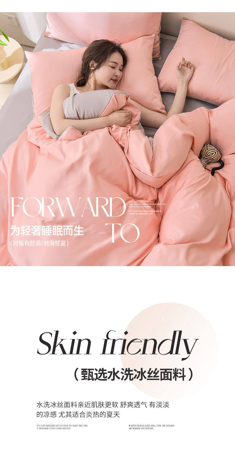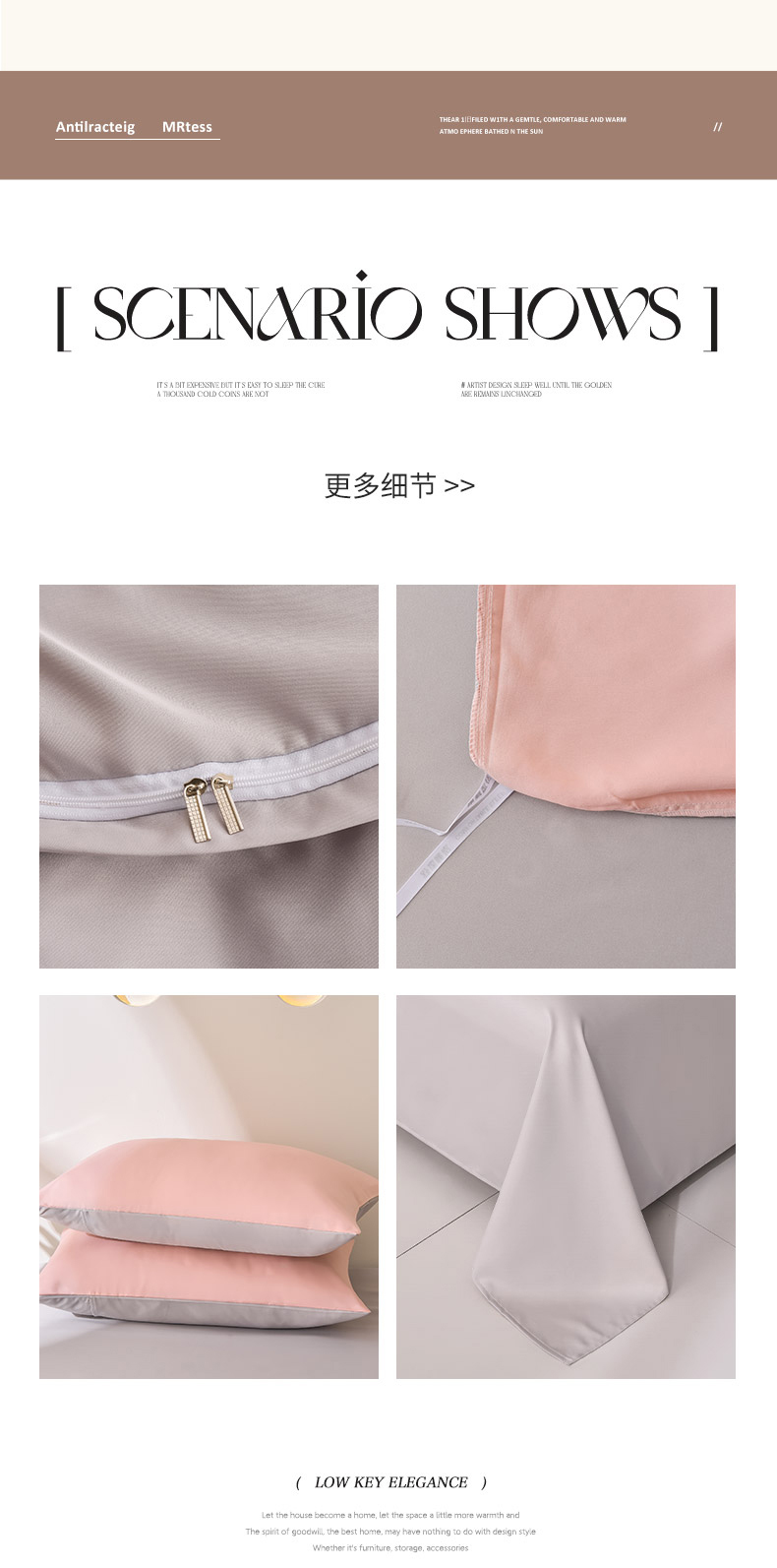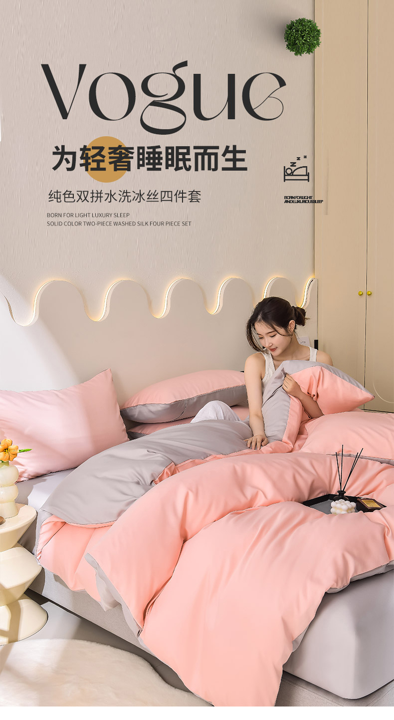 当前位置: 91家纺网 > 商品网购 > 床品套件 > 四件套 > 真丝四件套 > 简爱家纺 2025新款水洗真丝四件套 戴妃粉+雅致灰