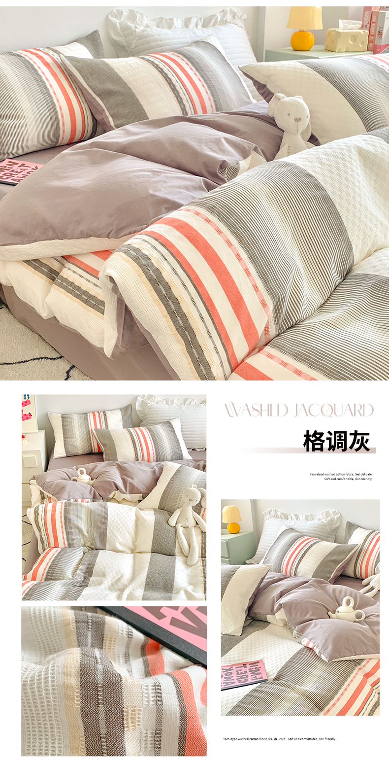 莱茵家居 2024新款大提花华夫格水洗棉印花四件套 水洗提花-格调灰