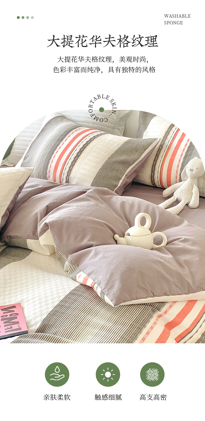 (总)莱茵家居 2025新款全棉纯棉皱皱纱条纹四件套-杼影,杼影-咖纸蓝,杼影-冷雾蓝,杼影-麦浪紫,杼影-绵云咖,杼影-奶泡粉,杼影-暖果黄,杼影-午茶绿,杼影-雨巷灰