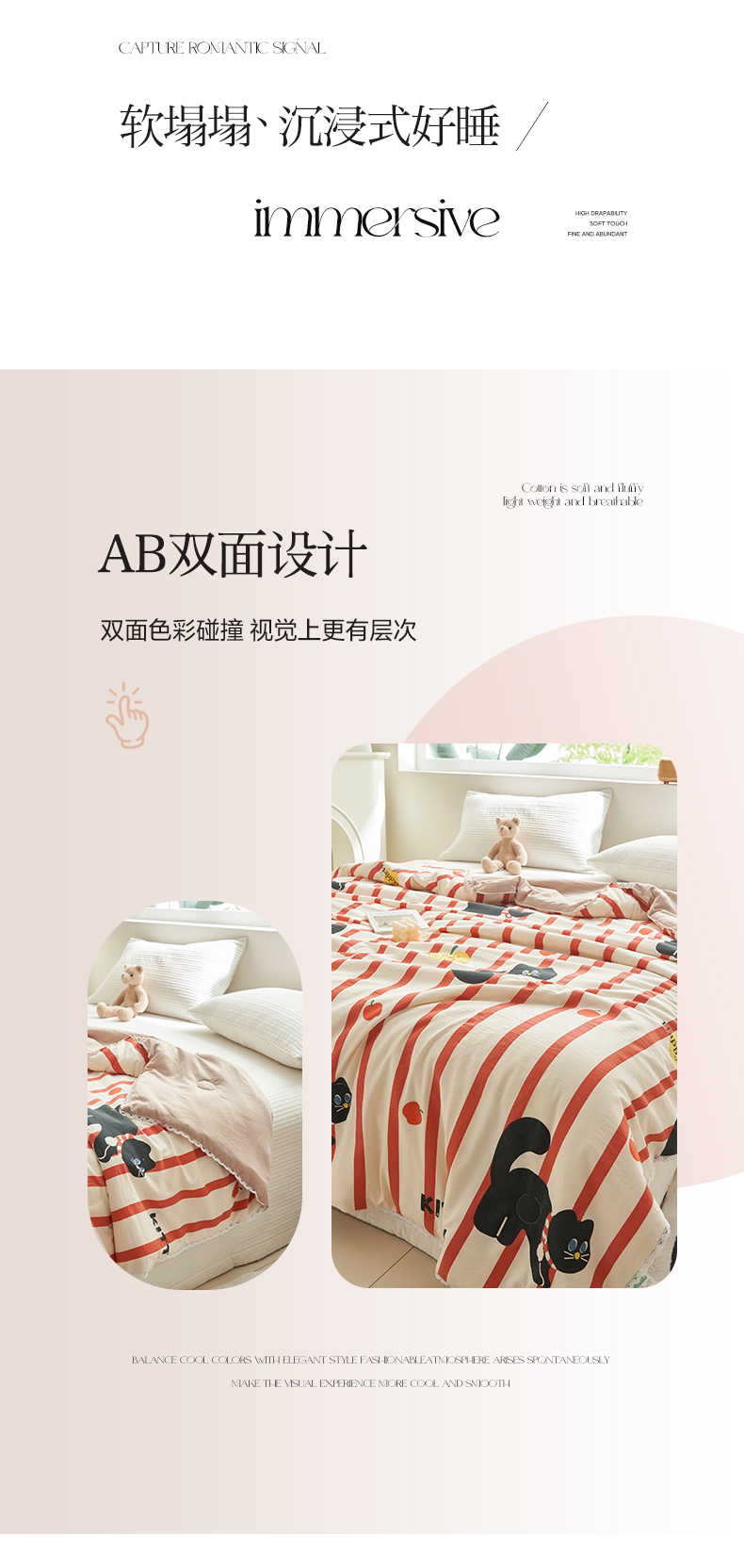 畅销被业 2025新款水洗棉印花夏被夏凉被空调被 煤球小猫