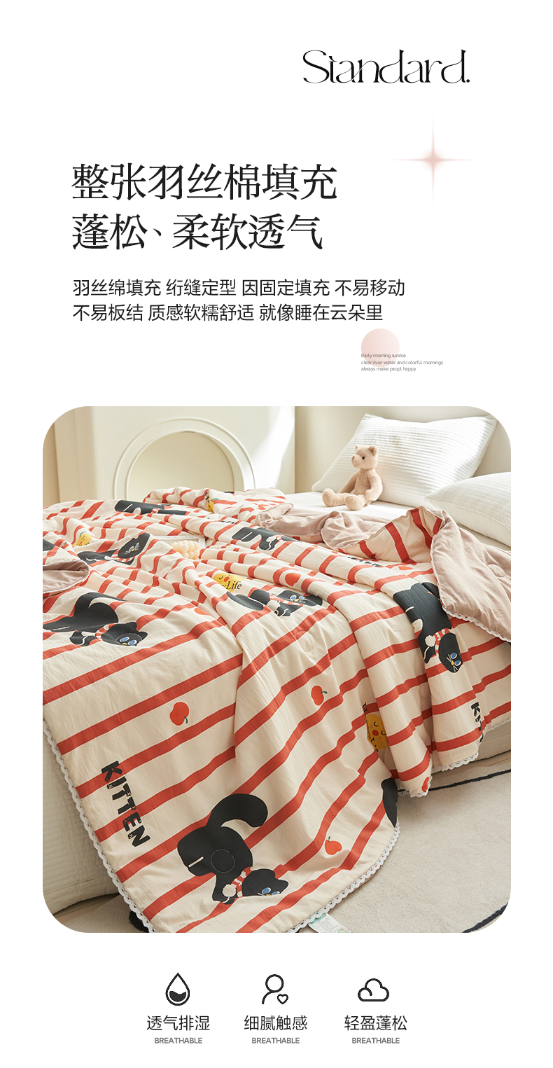 商品名称:畅销被业 2025新款水洗棉印花夏被夏凉被空调被 煤球小猫