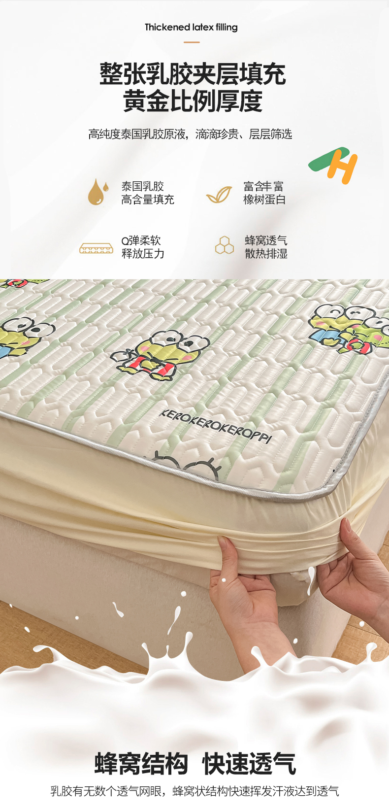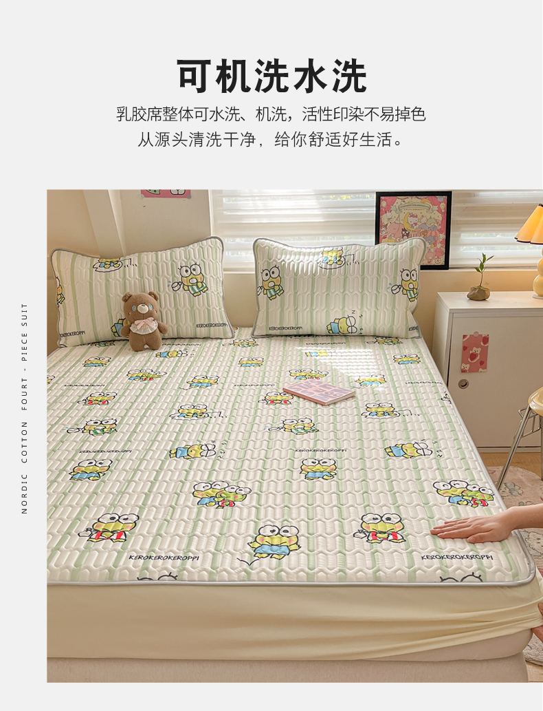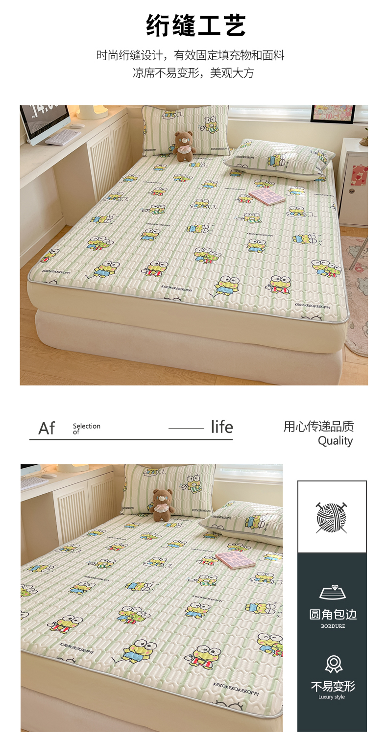 商品名称:金爱家 2024新款库洛米床笠款凉感丝乳胶凉席 床笠款-夏日大眼蛙