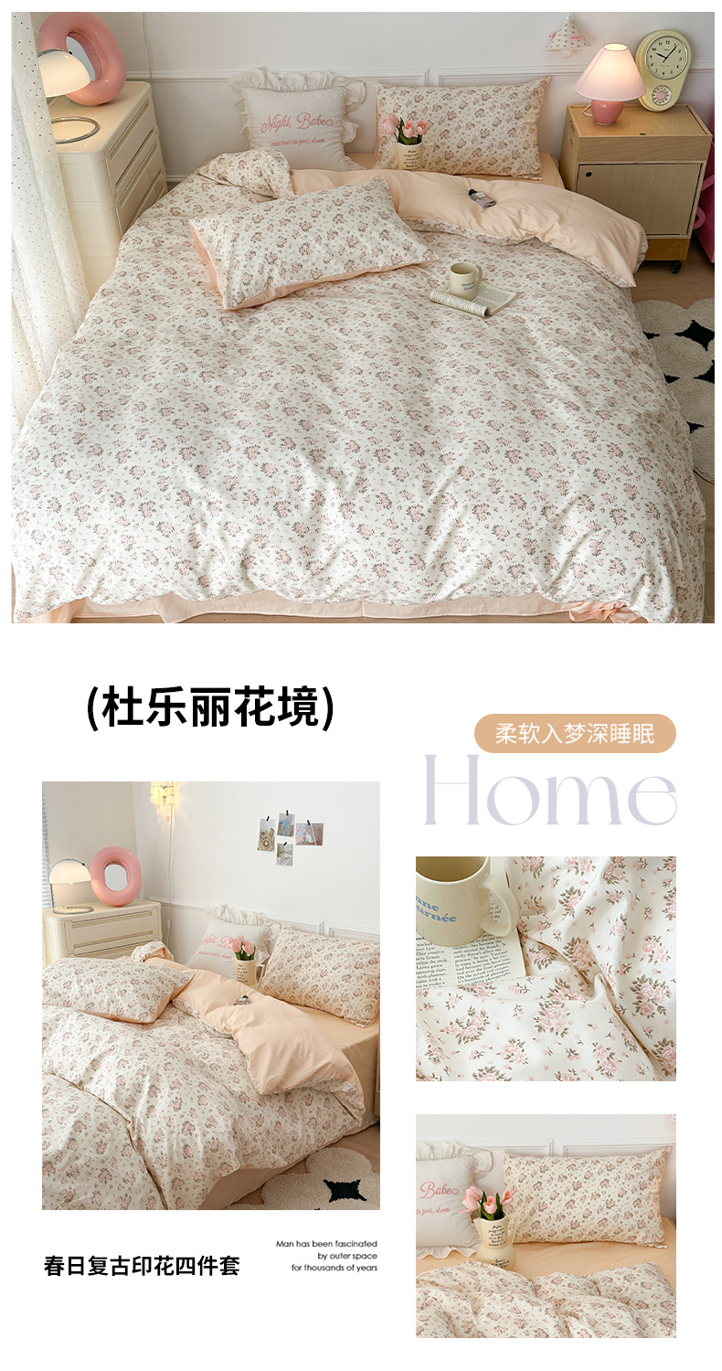 商品名称:昔可家纺 2024新款全棉春日复古印花四件套 杜乐丽花境