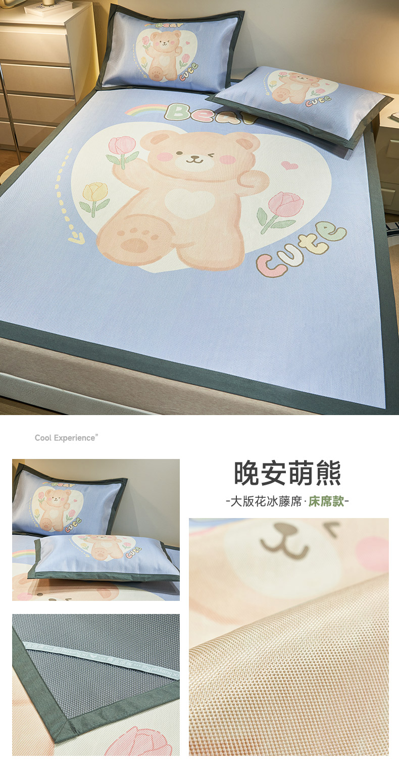 当前位置: 91家纺网 > 商品网购 > 床上用品 > 凉席 > 藤席 > 21度C 2024新款卡通大版数码印花冰藤席 晚安萌熊-床席款
