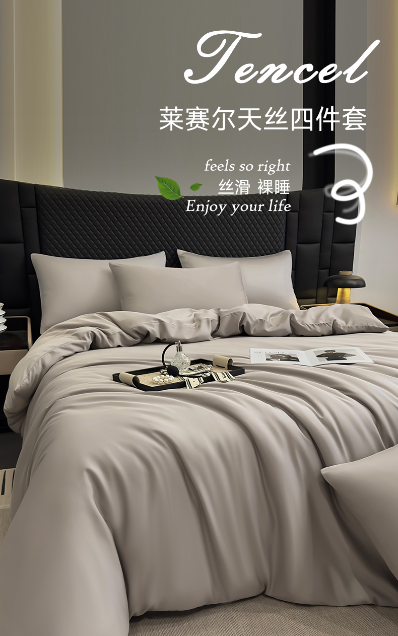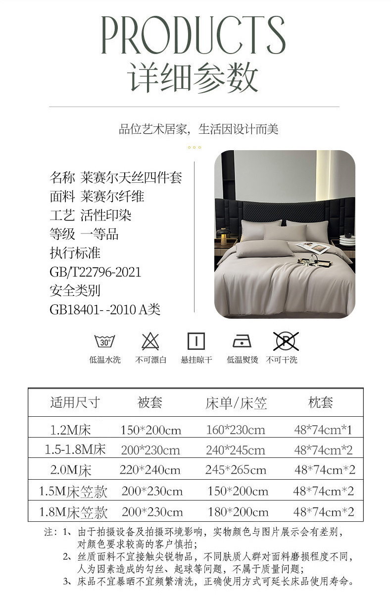 商品名称:直播爆款A类轻奢60S莱赛尔天丝四件套真丝四件套 山灰