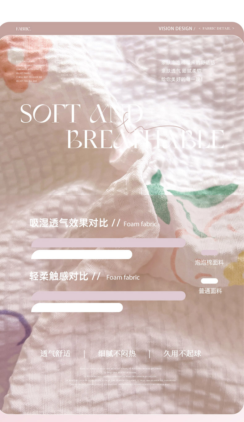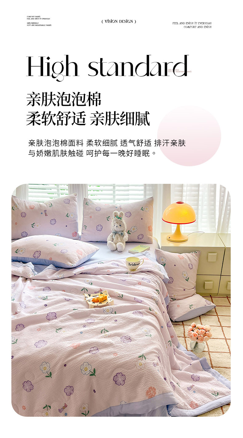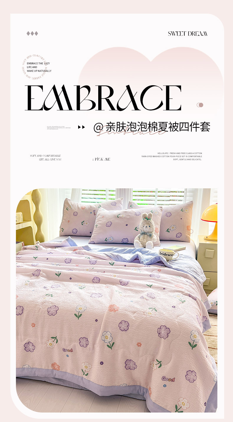 商品名称:妖妖家纺 2024新款有氧水洗泡泡棉印花四套泡芙棉夏被四件套 小花花
