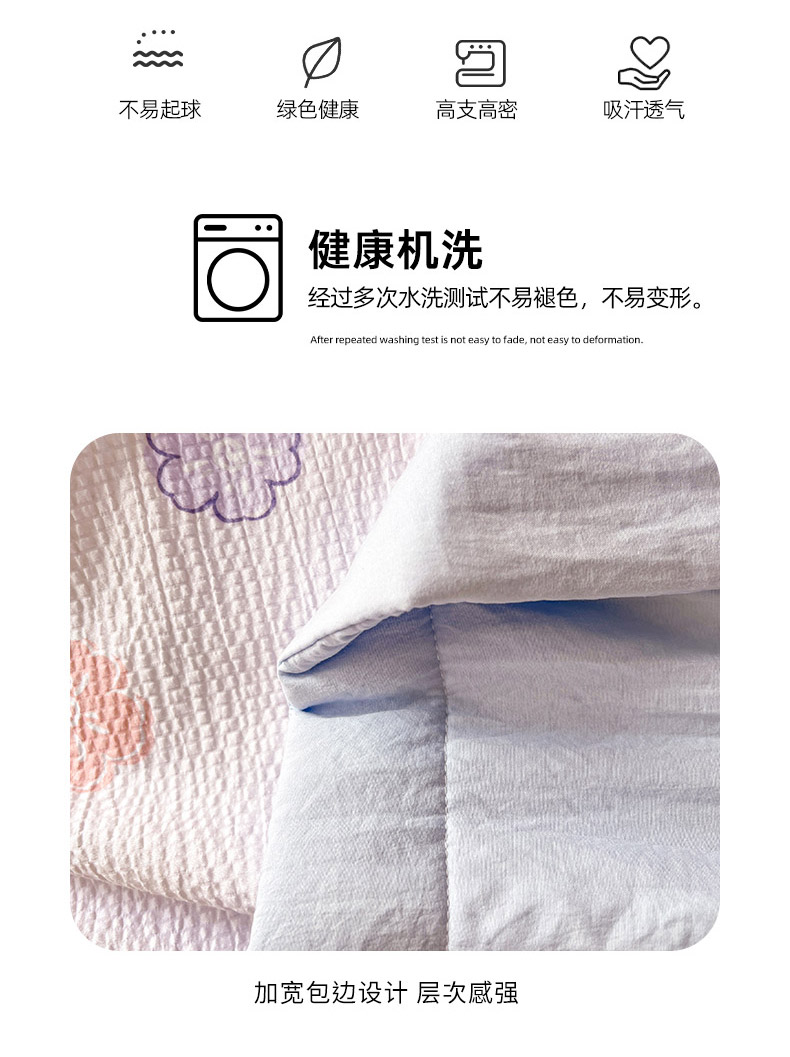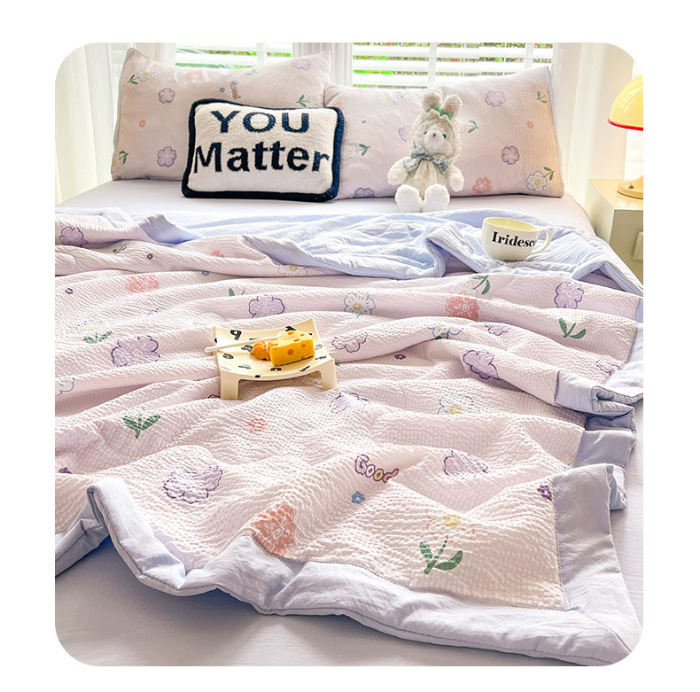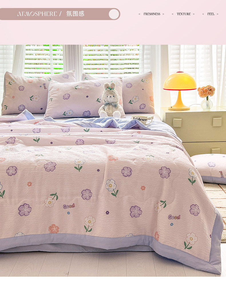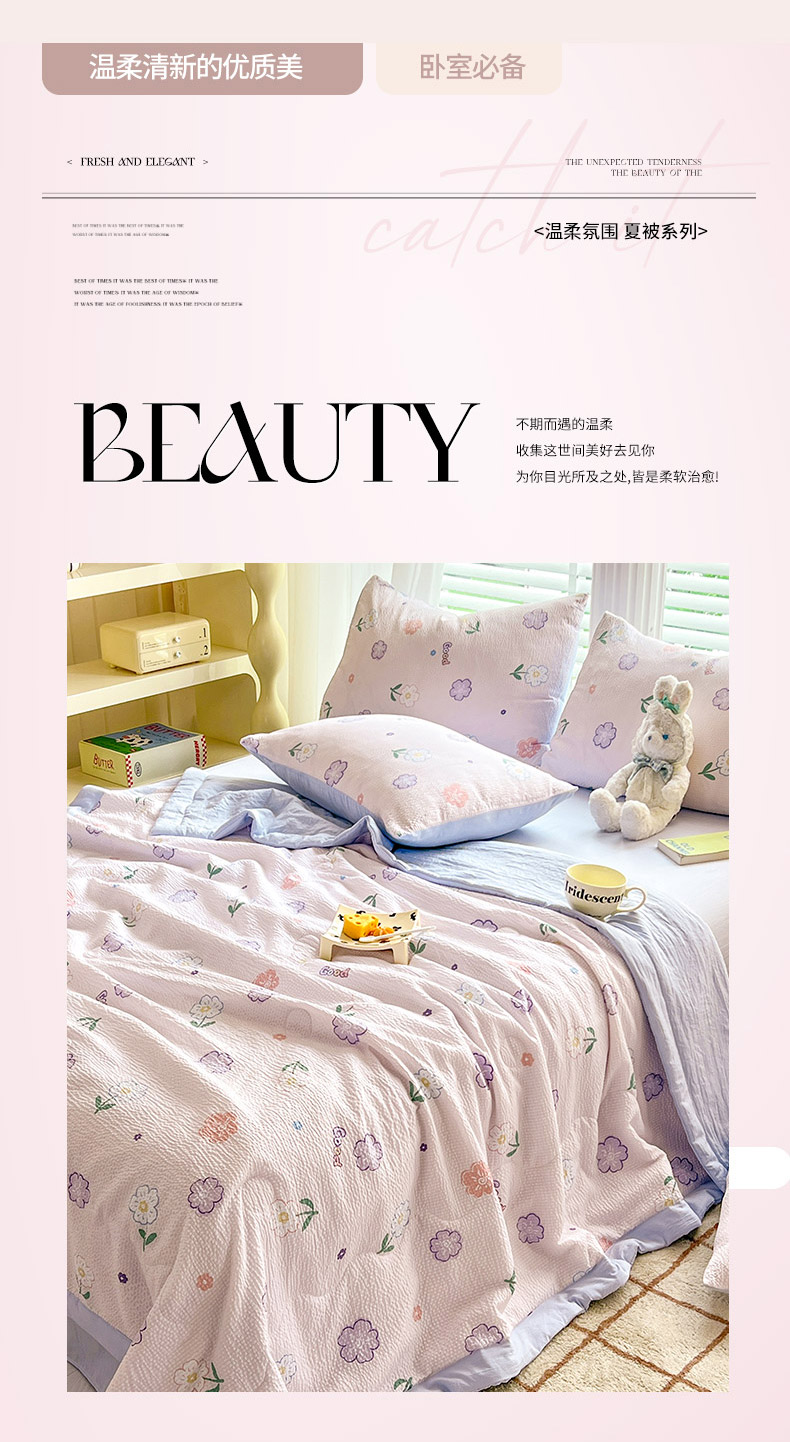 商品名称:妖妖家纺 2024新款有氧水洗泡泡棉印花四套泡芙棉夏被四件套 小花花