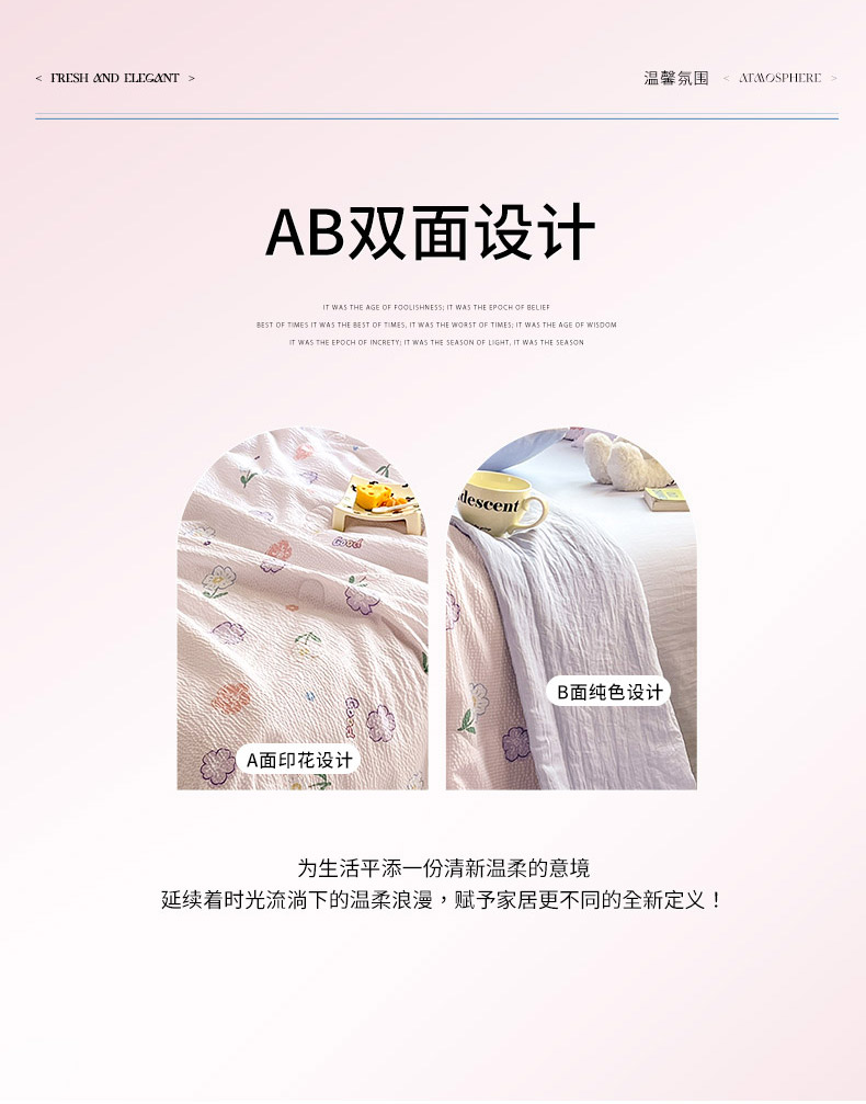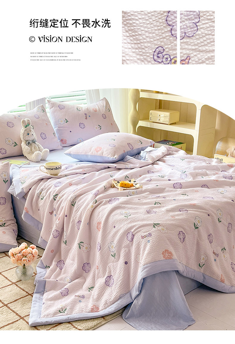 妖妖家纺 2024新款有氧水洗泡泡棉印花四套泡芙棉夏被四件套 小花花