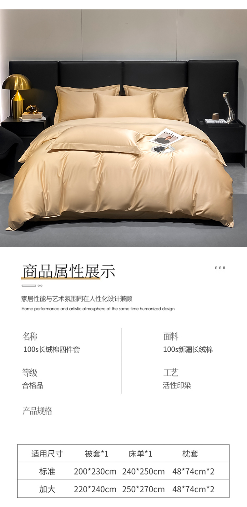 商品名称:富之航家纺 2024新款长绒棉四件套 雅克-香槟金