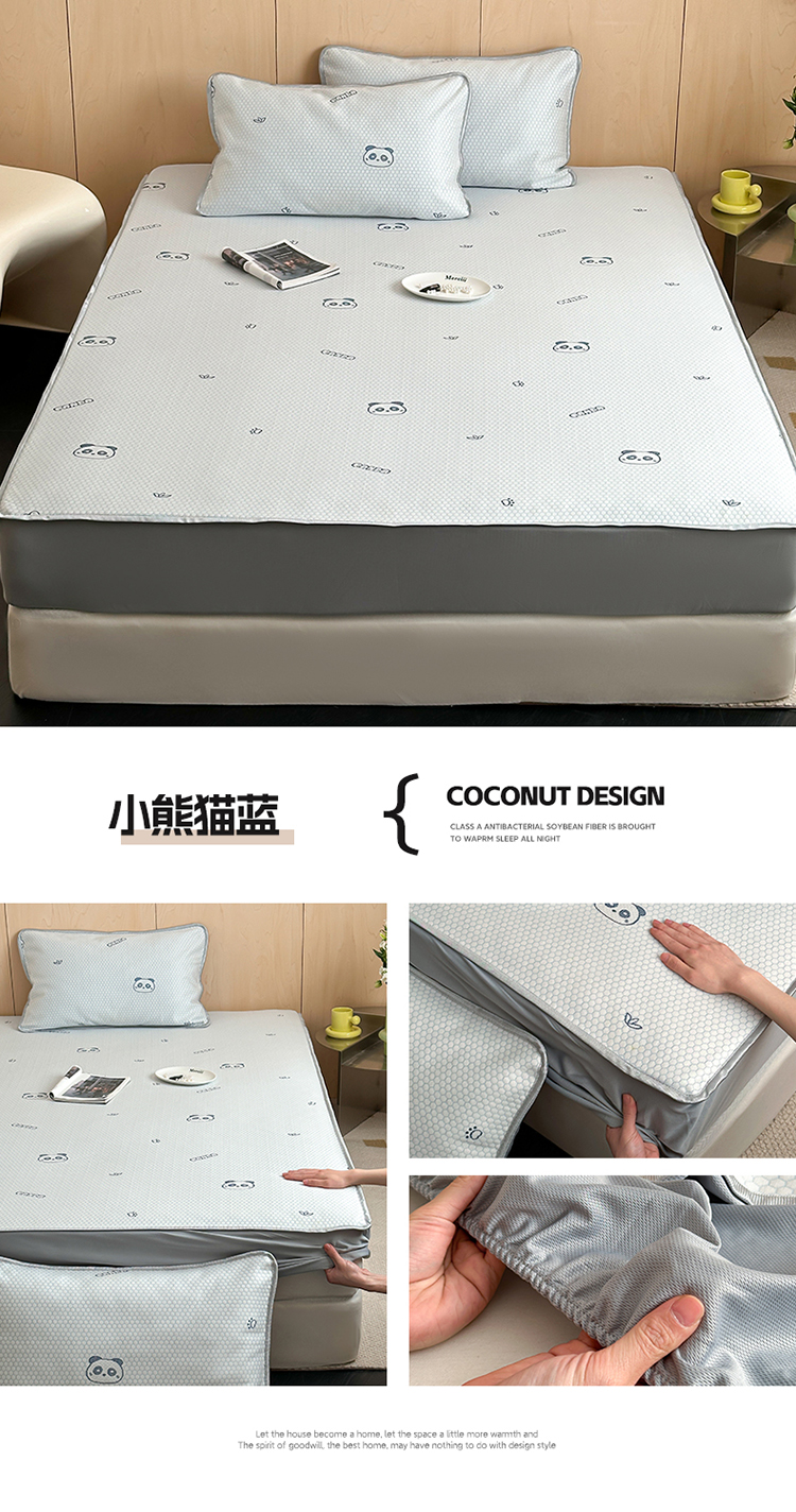 顾里家纺 新款冰豆豆立体提花软席床笠款 小熊猫蓝