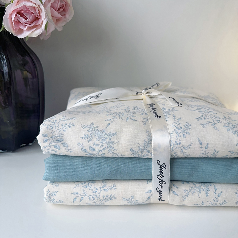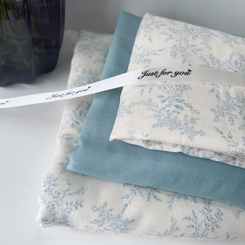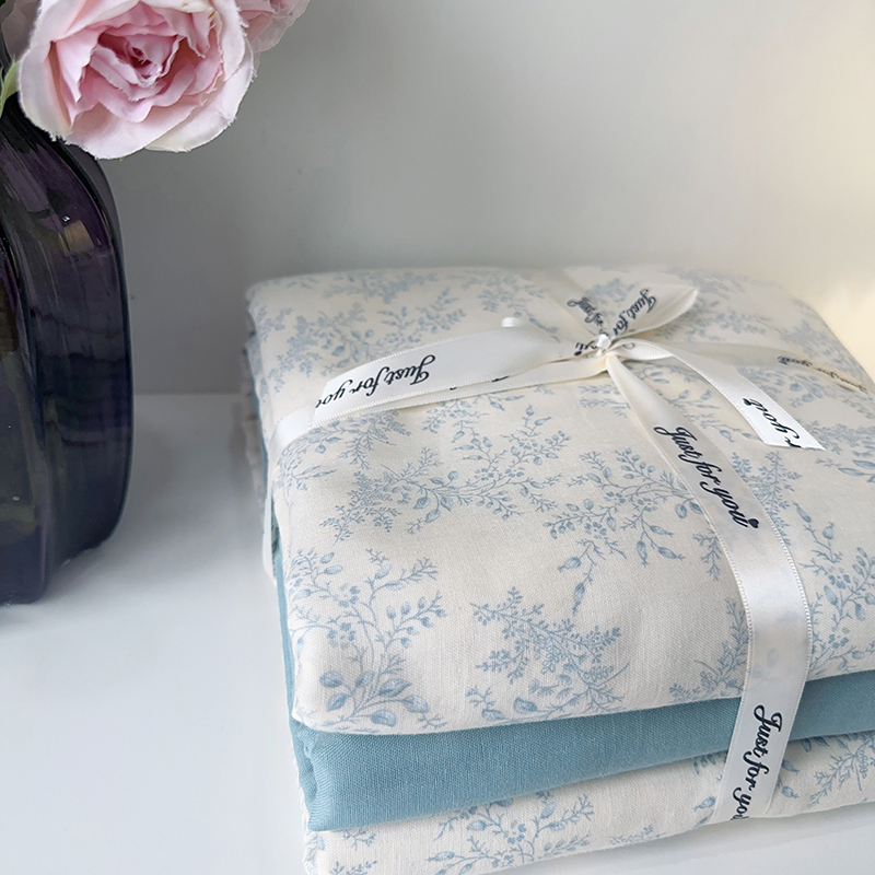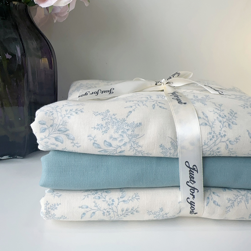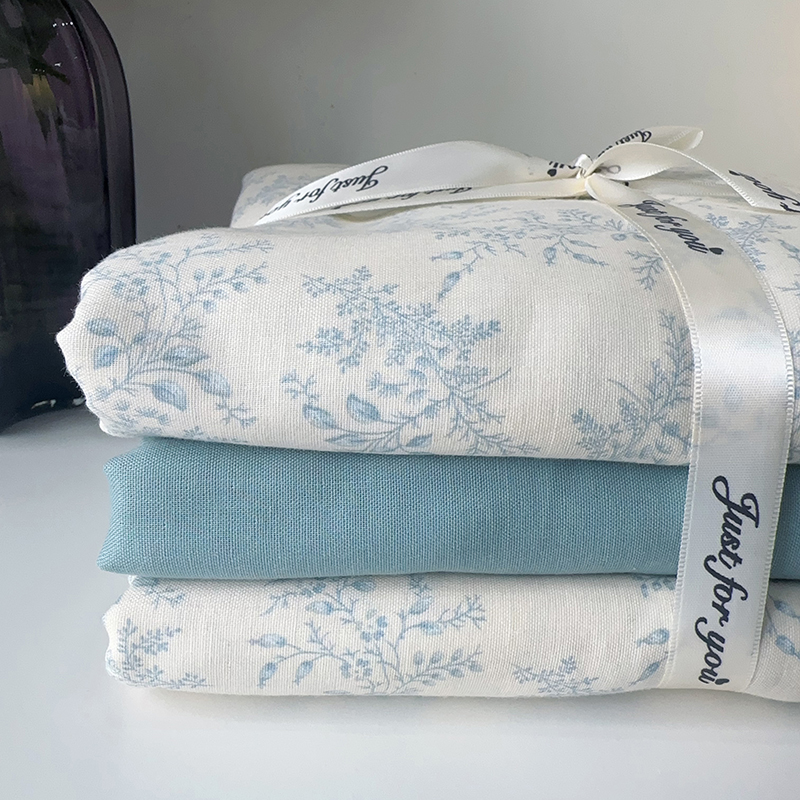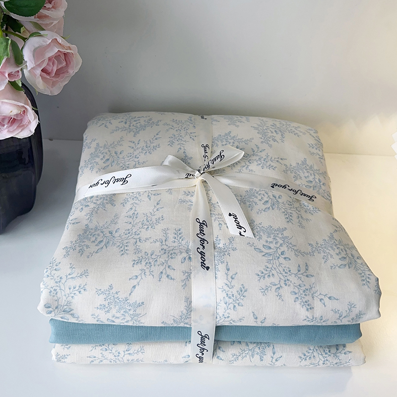 当前位置: 91家纺网 > 商品网购 > 床品套件 > 四件套 > 全棉普通四件套 > 麦伦家居 2024春夏新品全棉有氧双层纱印花系列四件套(叠拍图) 蓝萱