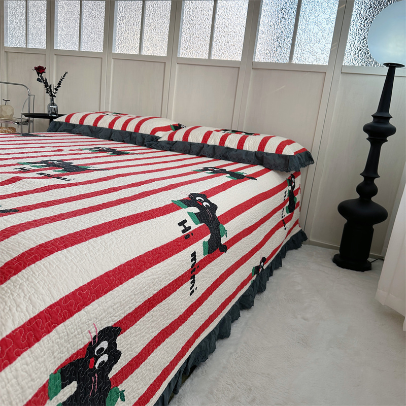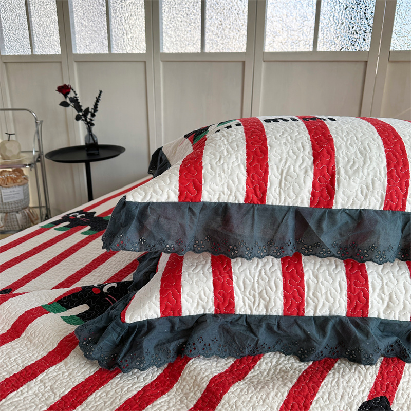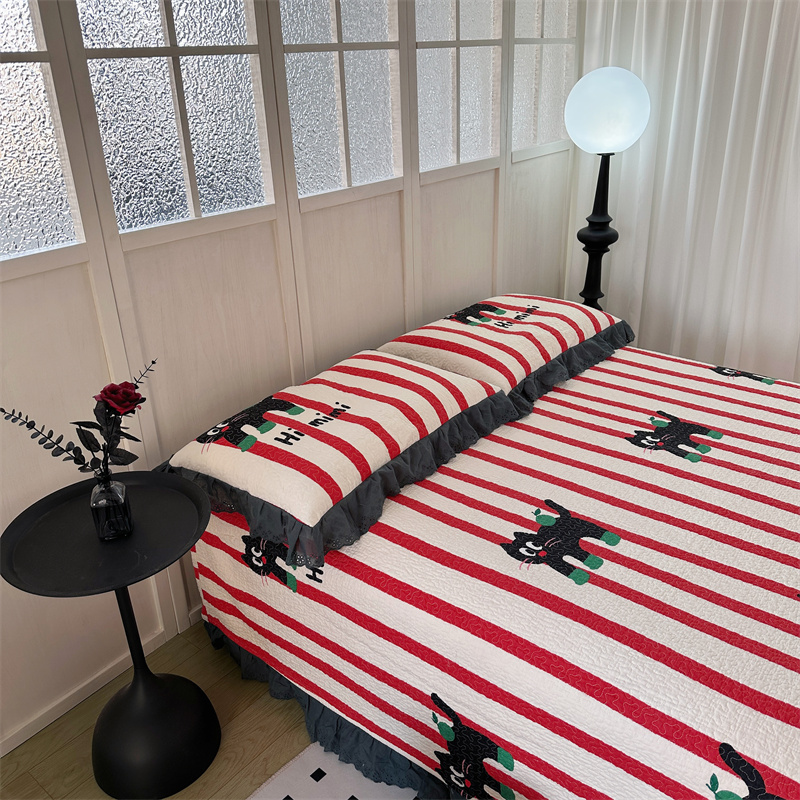 佰织鑫家居(会员-5元) 2024新款全棉法式棉花床盖三件套 时尚黑猫