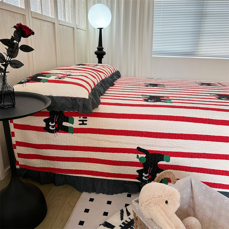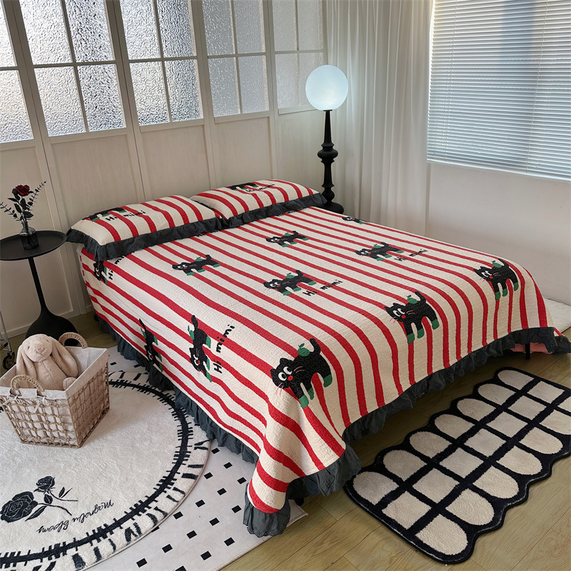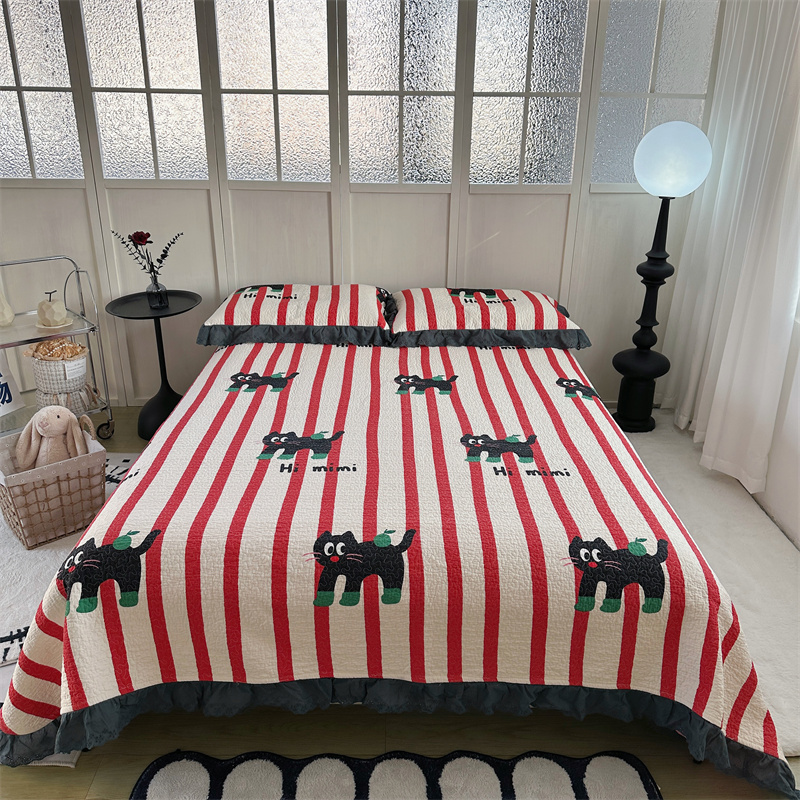 商品名称:佰织鑫家居(会员-5元) 2024新款全棉法式棉花床盖三件套 时尚黑猫