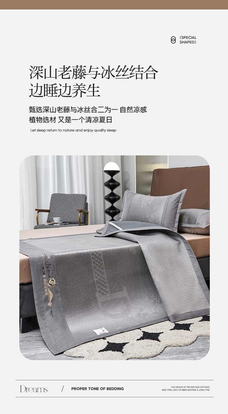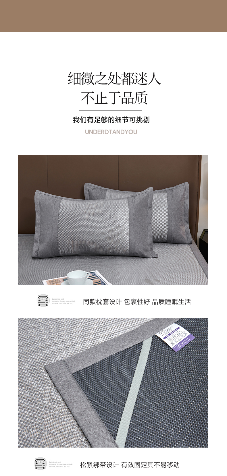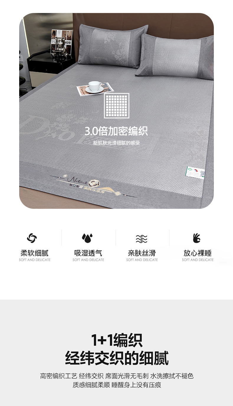 商品名称:优姿家纺 2024新款藤王重工刺绣加厚编制冰滕双凉席三件套 灰色